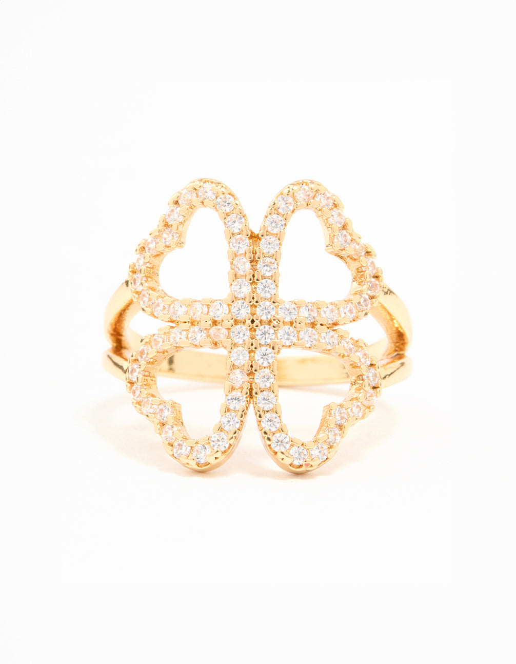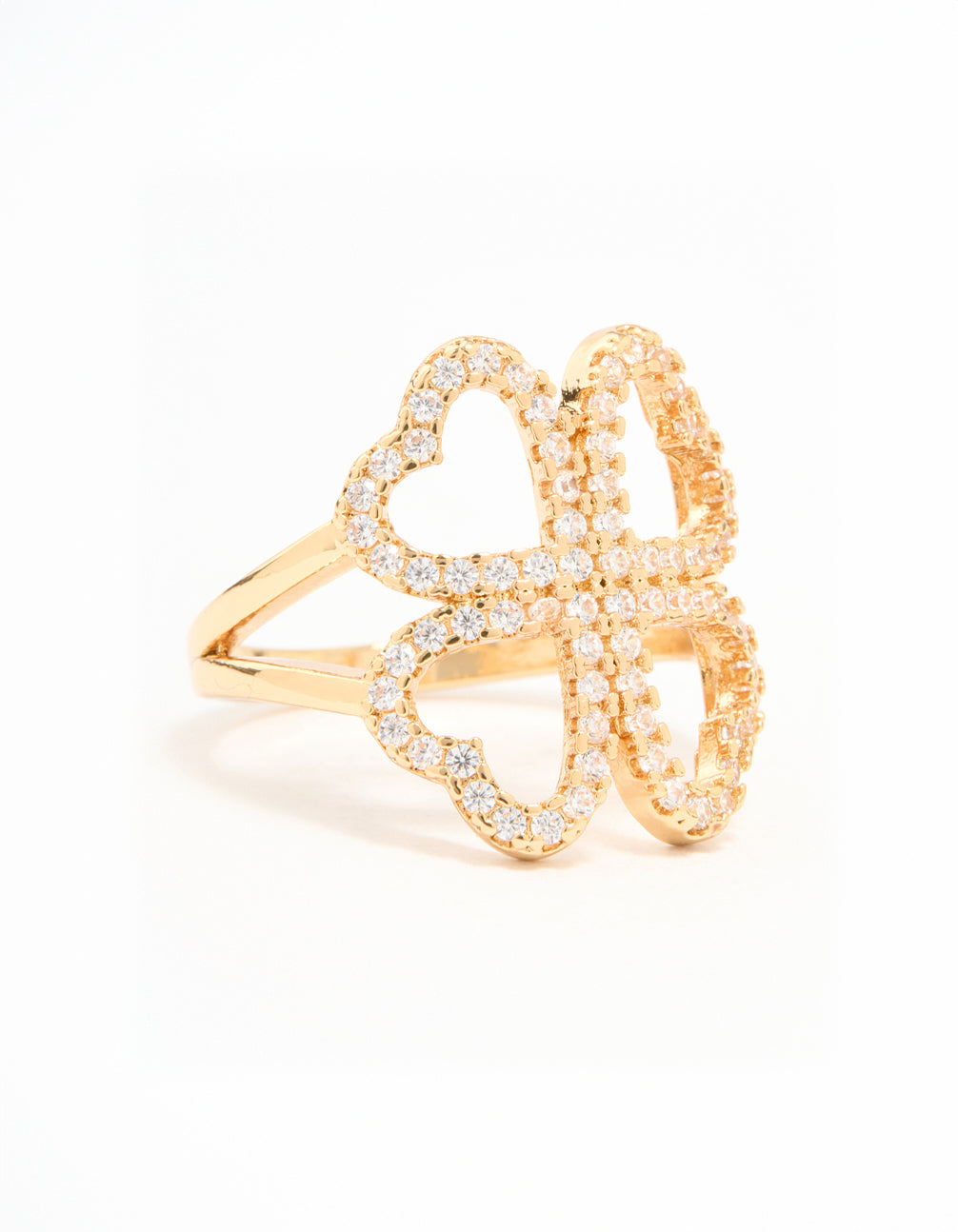 Gold Plated Cubic Zirconia Shamrock Statement Ring