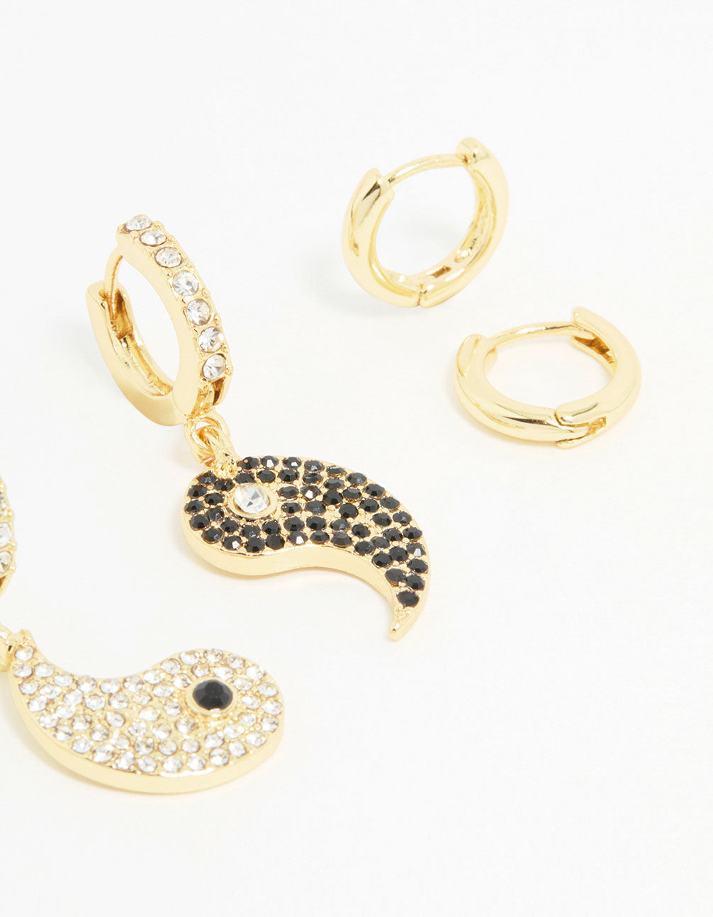 Gold Plated Cubic Zirconia Yin Yang Earrings 3-Pack