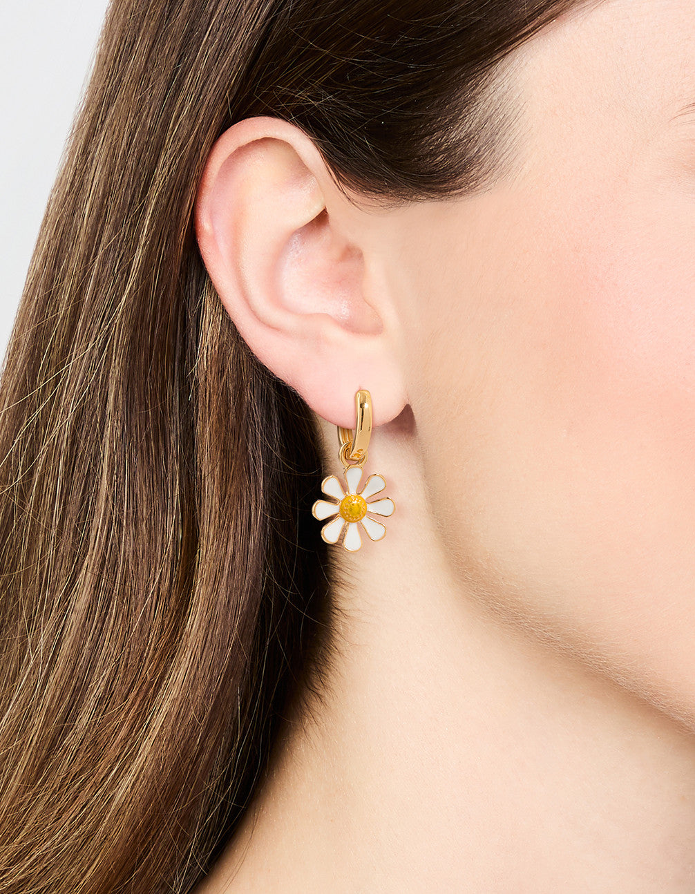 Add some floral fun to your style with these huggie earrings! These gold-plated beauties feature a playful daisy design, perfect for a touch of 70s chic and floral charm.
