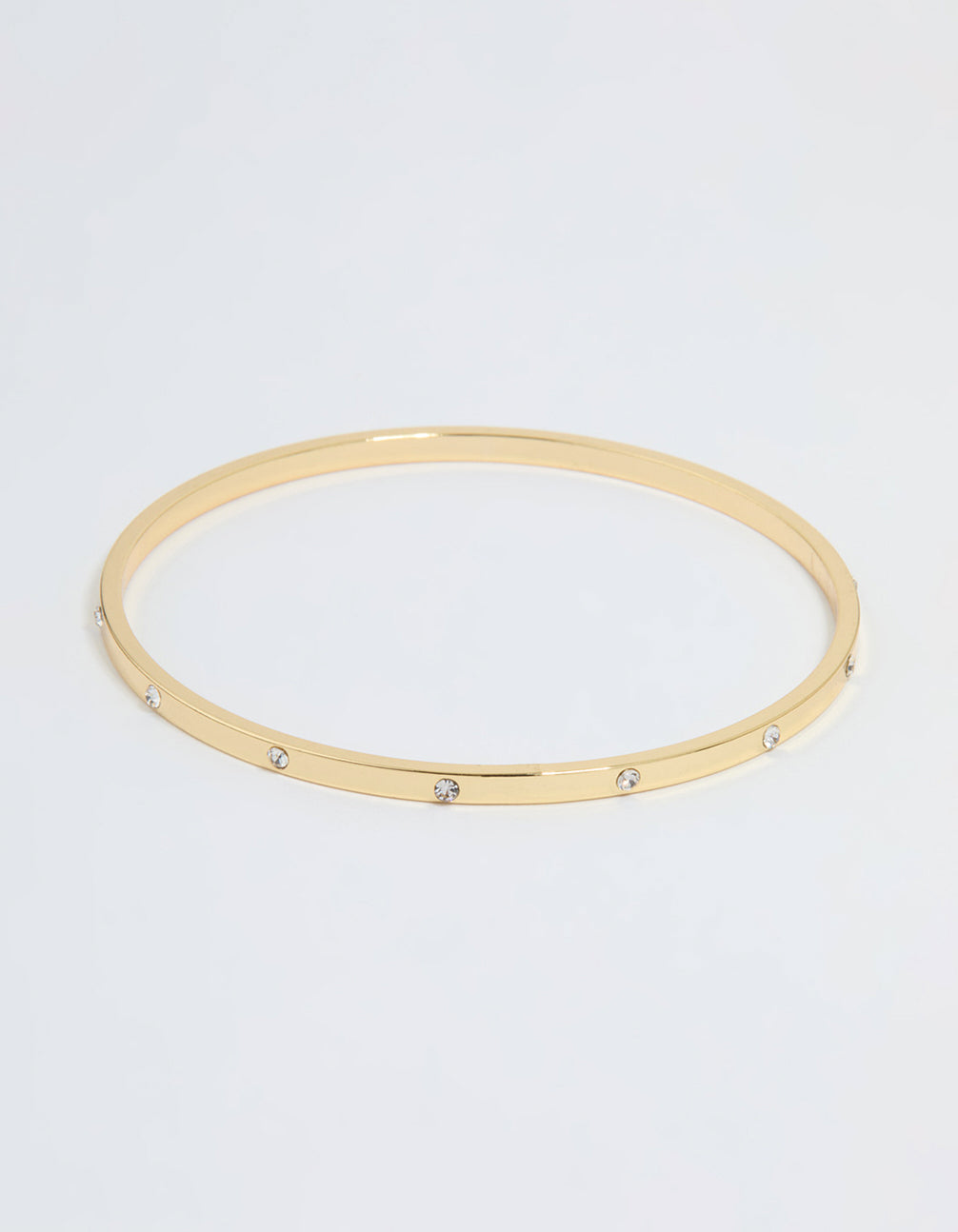 Add a touch of elegance to any outfit with this Gold Plated Diamante Inlay Bangle. This stunning bangle features a sleek gold-plated finish and delicate diamante inlay for a subtle sparkle. Perfect for day-to-night styling, this bangle works beautifully with everything from casual jeans and a blouse to your favourite evening dress. Whether you're dressing up for a special occasion or adding a little glamour to your everyday look, this bangle is a versatile must-have. Its timeless design makes it ideal for stacking with other bracelets or wearing solo as a statement piece. Perfect for anyone who loves chic, polished accessories with just the right amount of shimmer!
