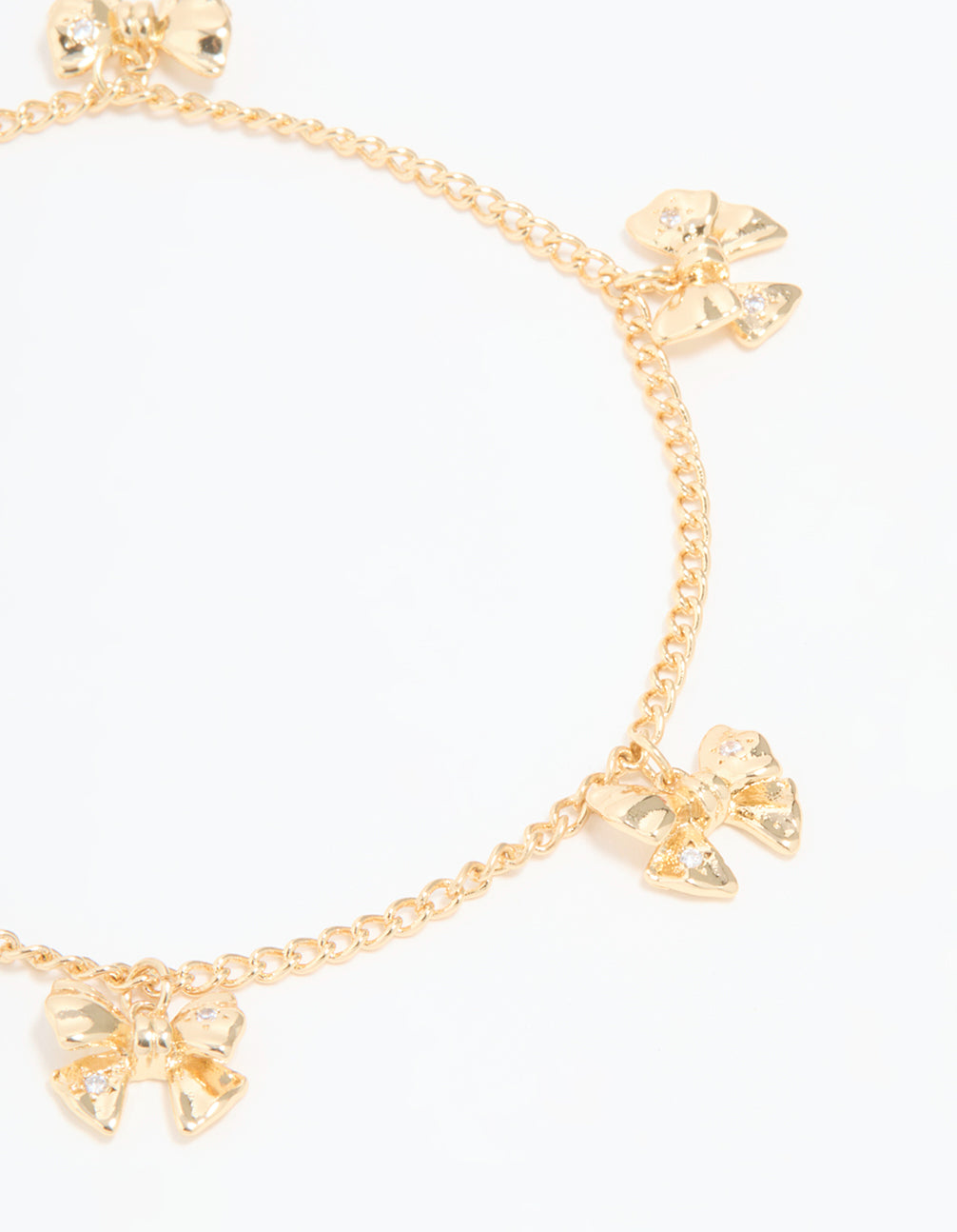 Gold Plated Diamante Mini Bow Charm Bracelet