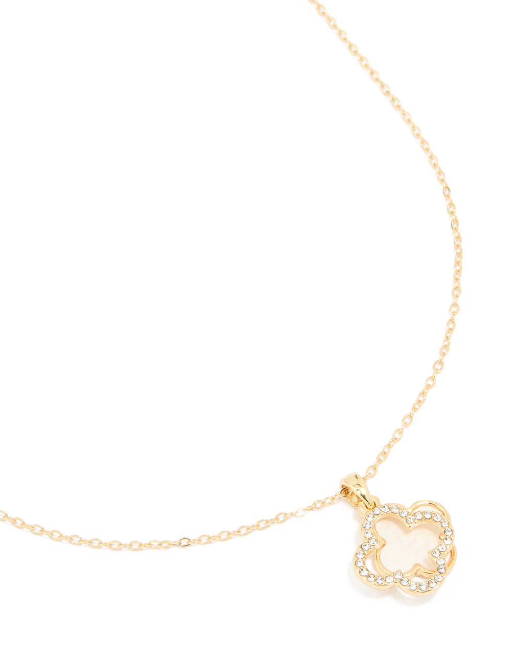 Gold Plated Diamante Outline Flower Pendant Necklace