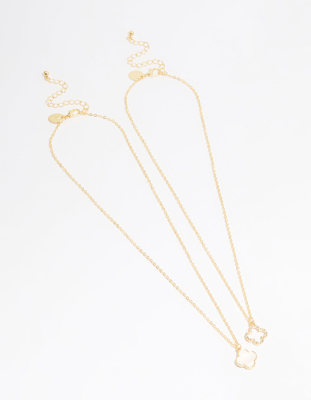 Gold Plated Flower Pendant Necklaces 2-Pack