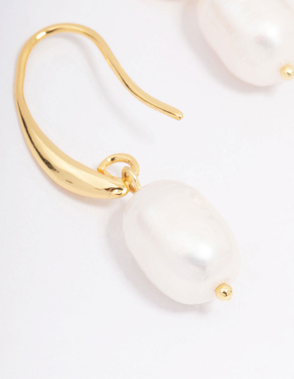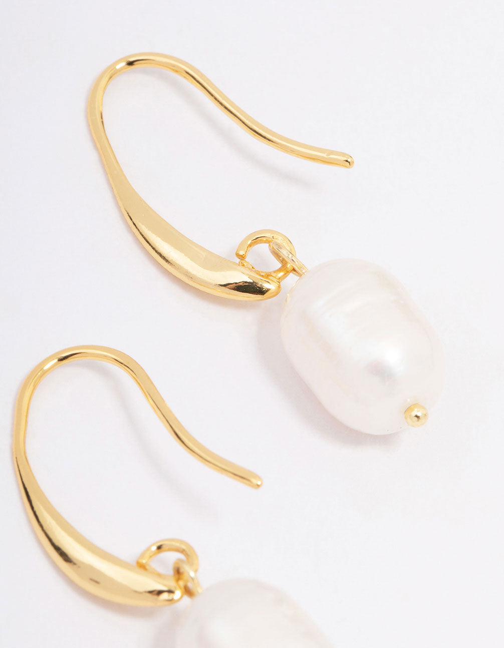 Gold Plated Freshwater Pearl Medium Hook Drop Earrings