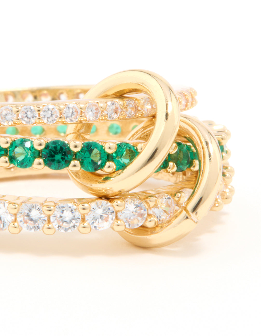 Gold Plated Green Cubic Zirconia Stacked Ring
