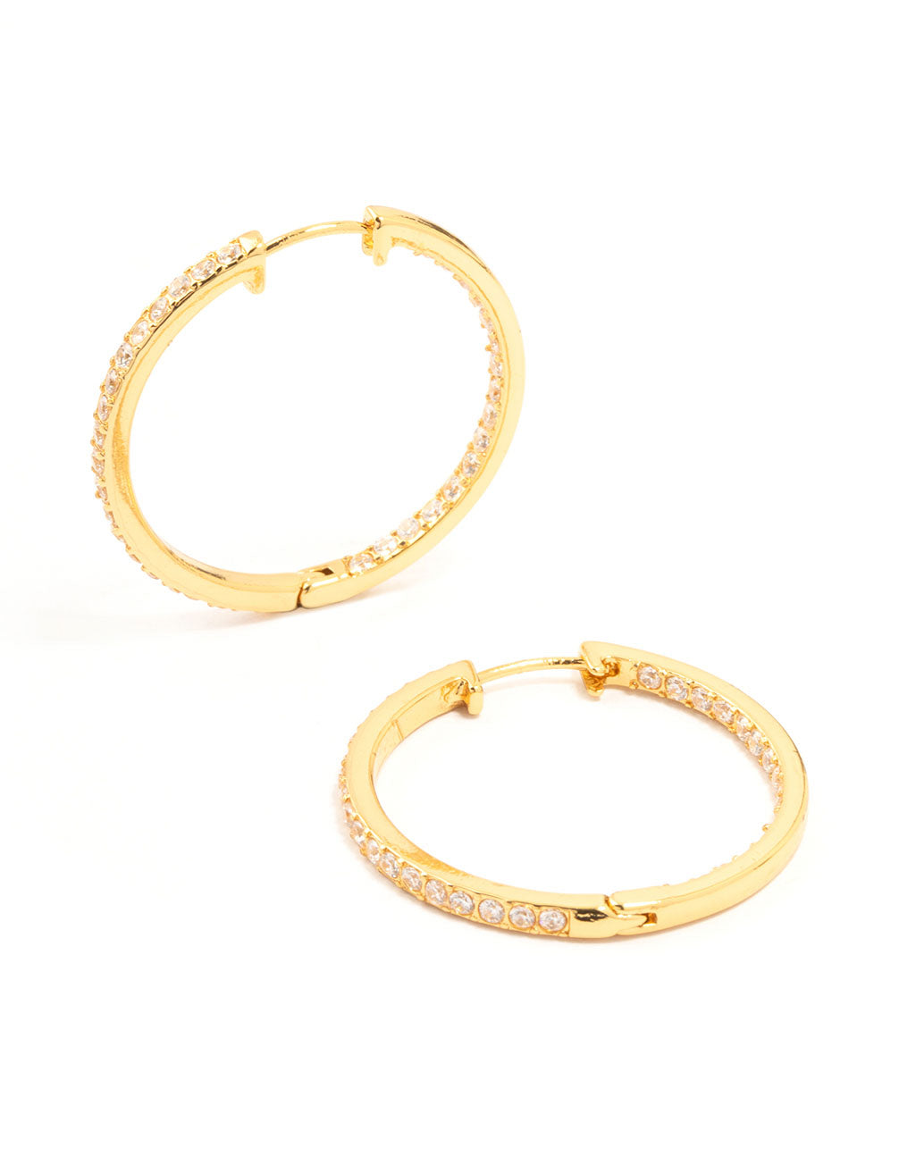 Embrace effortless elegance that's made to last with these classic, gold plated hoops lined with clear crystals on the inside for a subtle, yet brilliant shine. These earrings are sure to add some sparkle to your everyday moments.