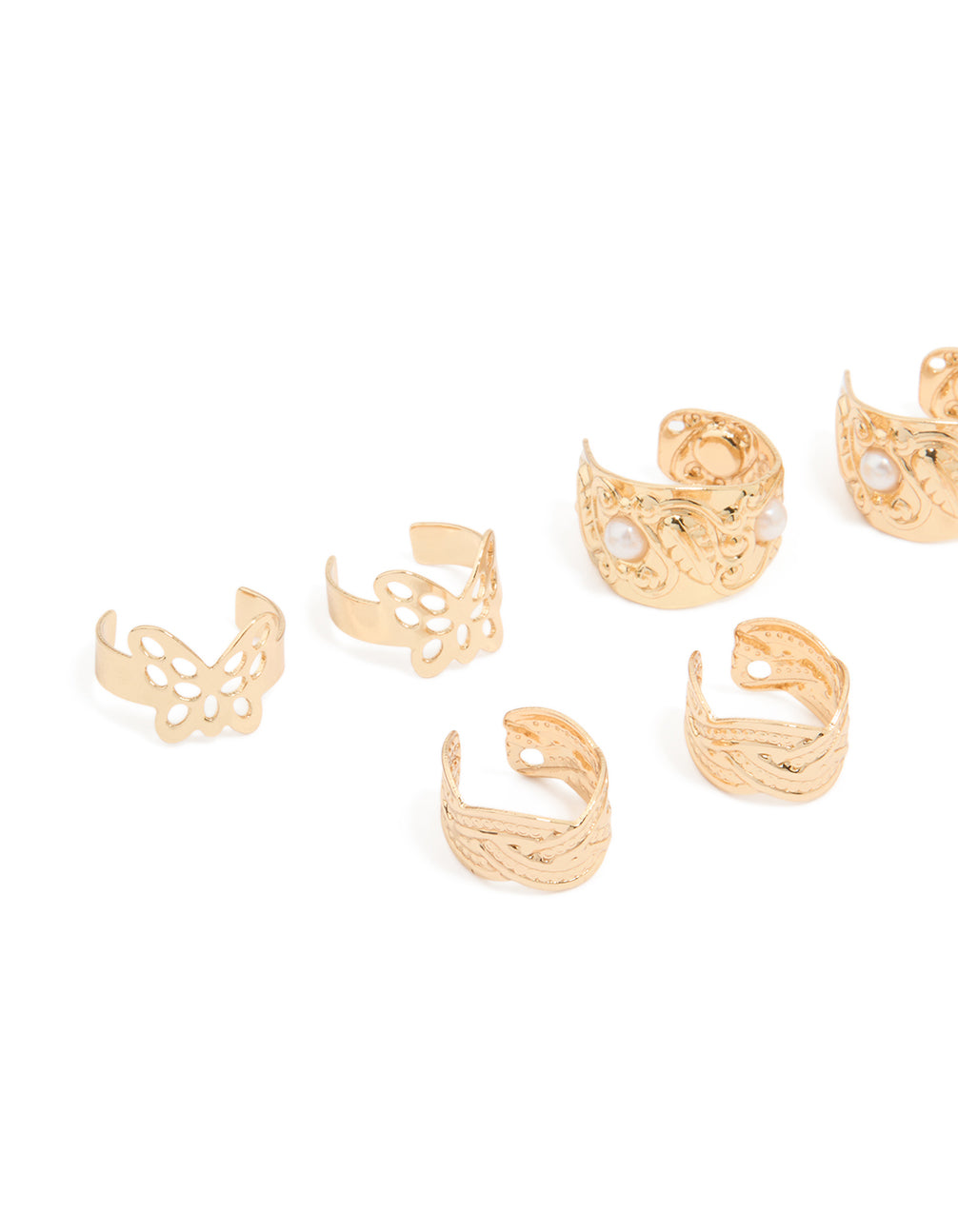 Looking to refresh your accessory game? This Gold Plated Mixed Ear Cuff Pack is here to help! Featuring a variety of stylish ear cuffs, this set offers endless ways to mix and match. Crafted with a gold-plated finish, these elegant and edgy designs are perfect for adding a subtle shimmer to your look. Whether you're dressing up for a night out or keeping things casual, these versatile ear cuffs are ideal for layering with hoops, studs, or statement earrings. No piercings? No problem, just slide these beauties on for instant glam. Perfect for parties, brunch, or just elevating your everyday vibe, this pack is your go-to for effortless style.