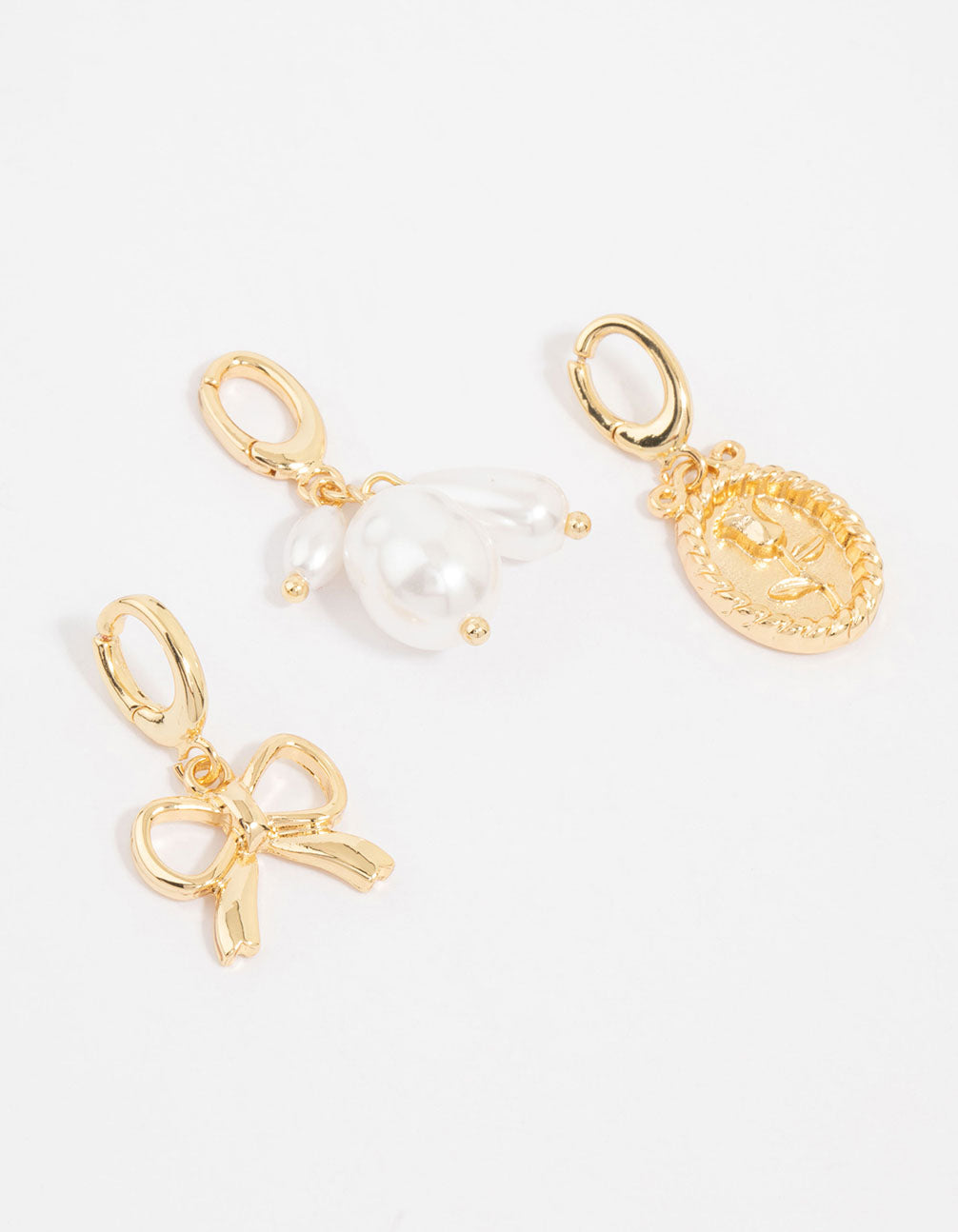 Gold Plated Pearl & Bow Charms 3-Pack Gold Plated Pearl & Bow Charms 3-Pack Gold Plated Pearl & Bow Charms 3-Pack