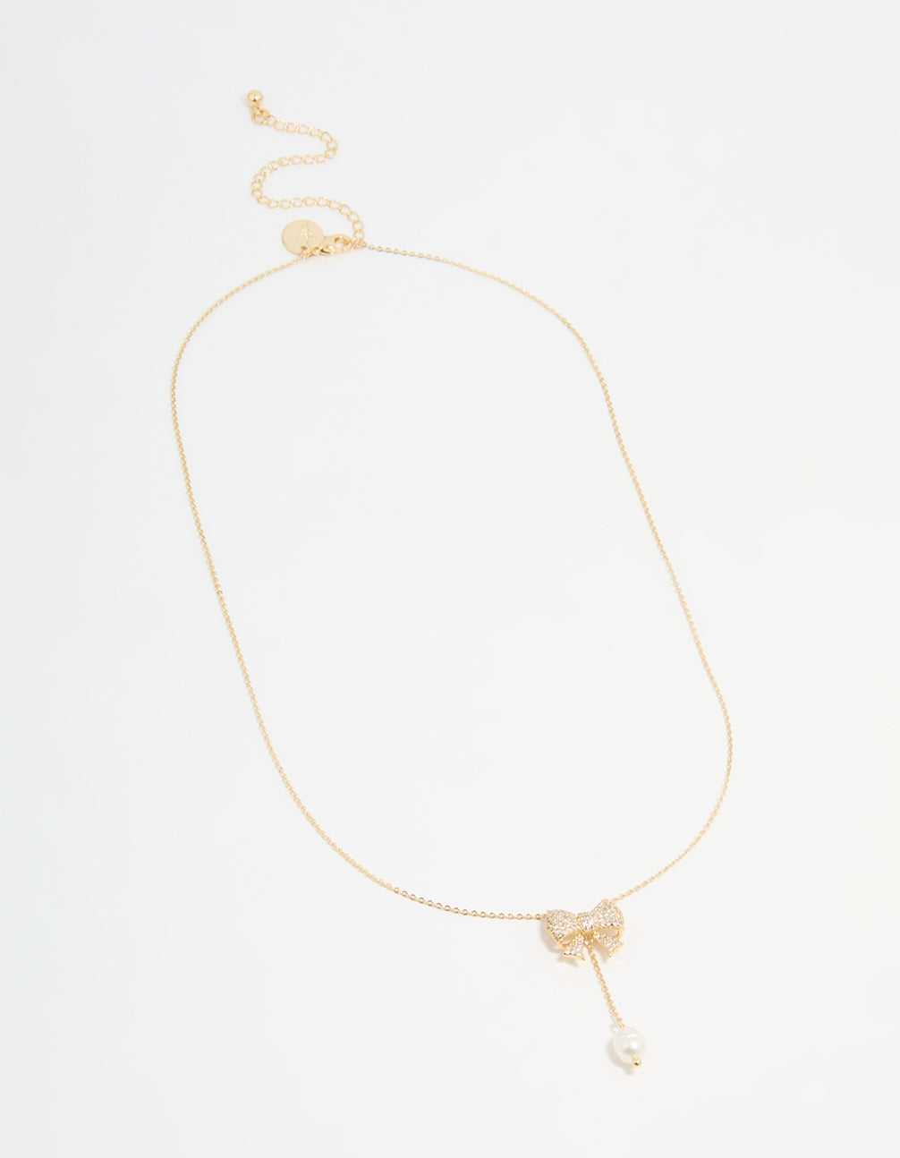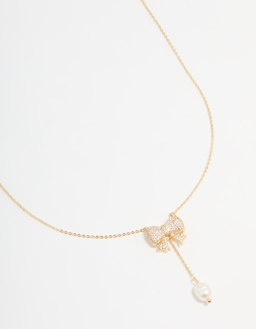 Gold Plated Pearl & Cubic Zirconia Chunky Bow Y-Necklace