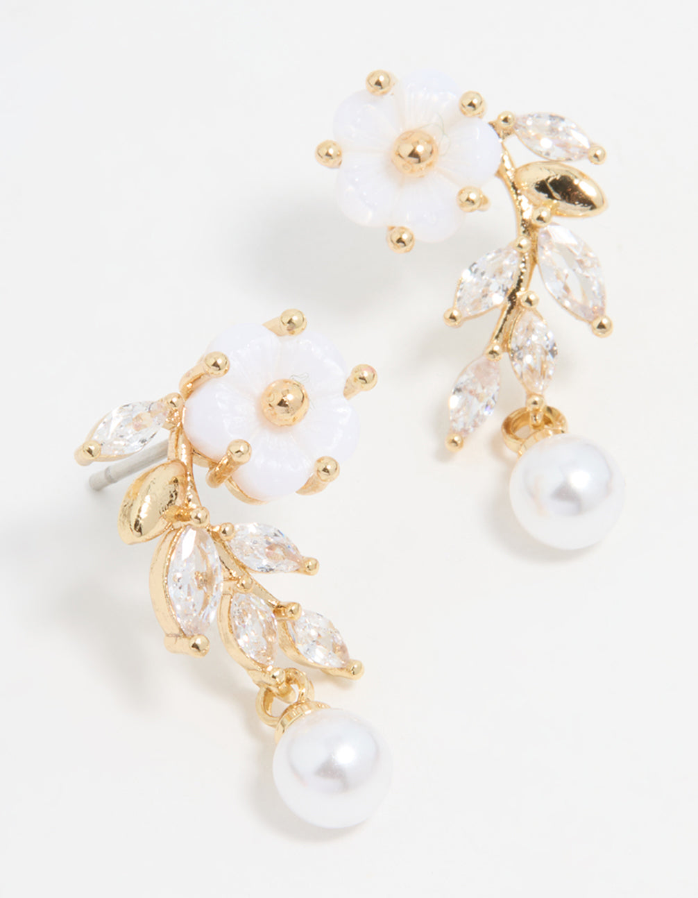 Gold Plated Pearl Flower Drop Earrings