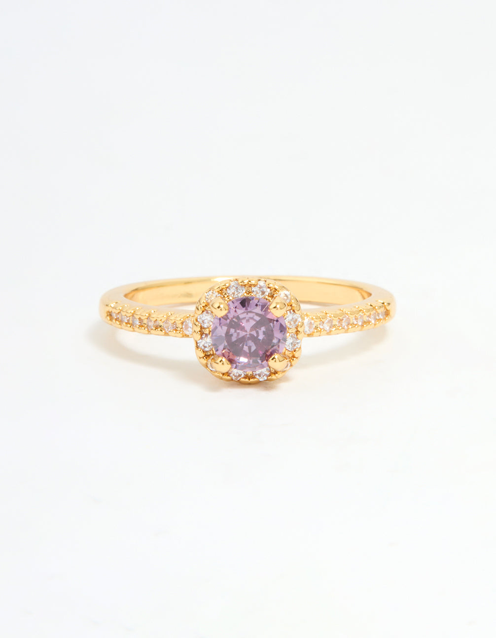 Gold Plated Purple Cubic Zirconia Mini Cushion Ring