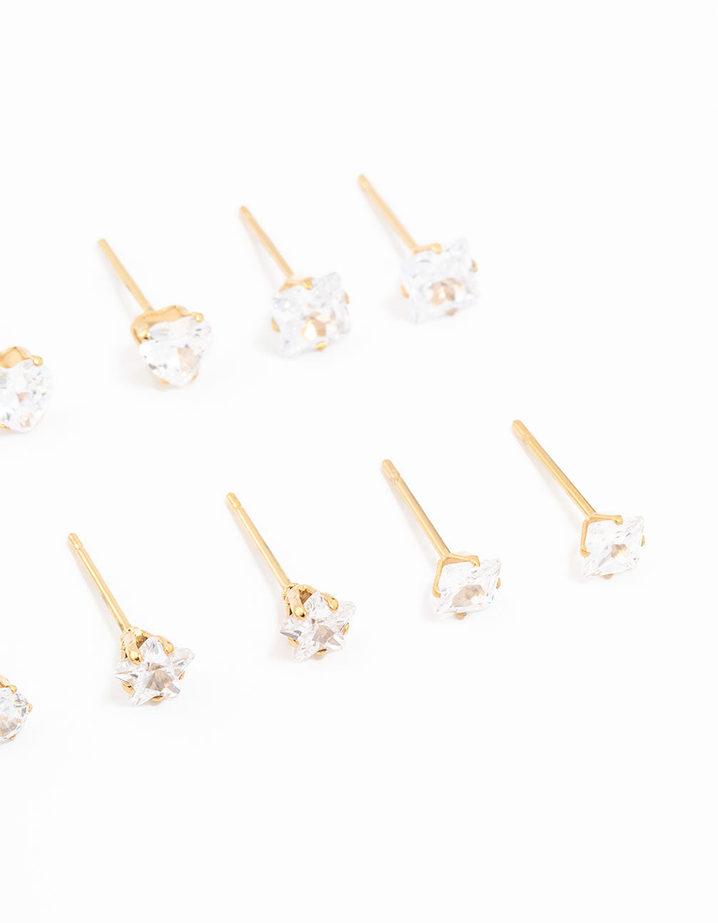 Waterproof Gold Plated Stainless Steel Cubic Zirconia Stud Earrings 6-Pack