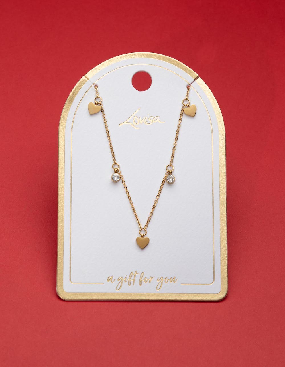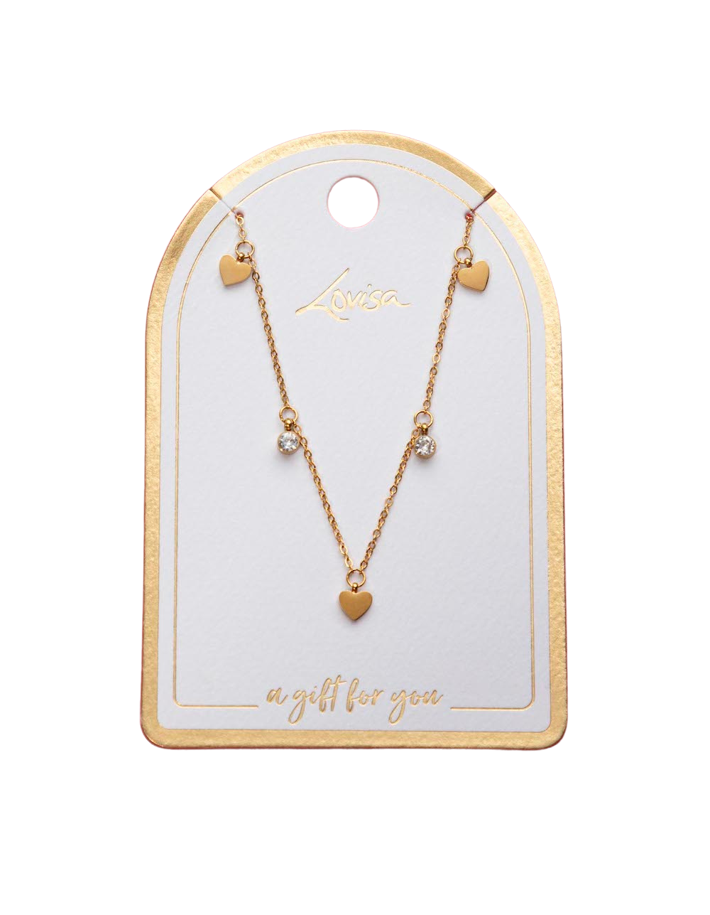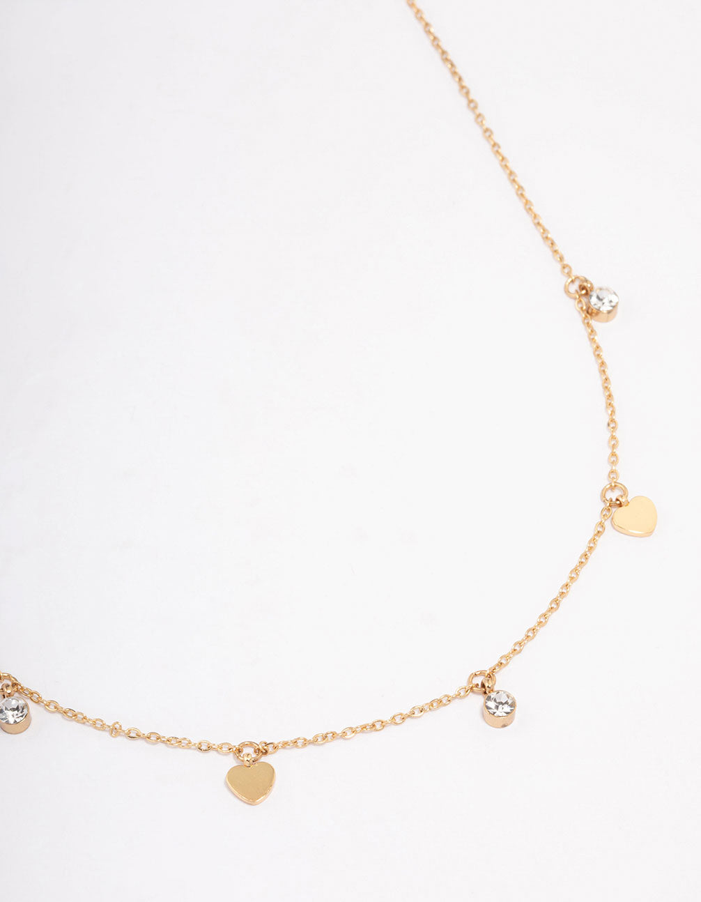 Waterproof Gold Plated Stainless Steel Diamante & Heart Necklace