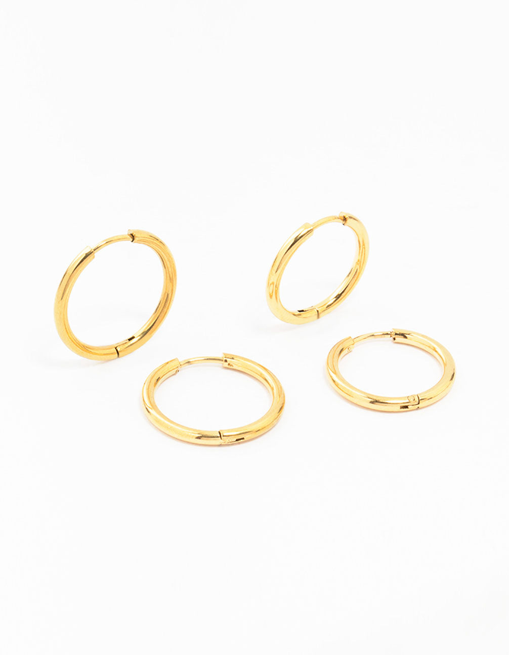 Waterproof Gold Plated Stainless Steel Mini Hoop Earrings 2-Pack