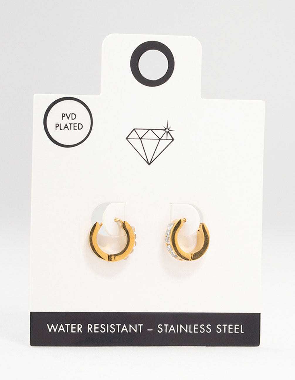 Waterproof Gold Plated Stainless Steel Square Cut Diamante Huggie Earrings