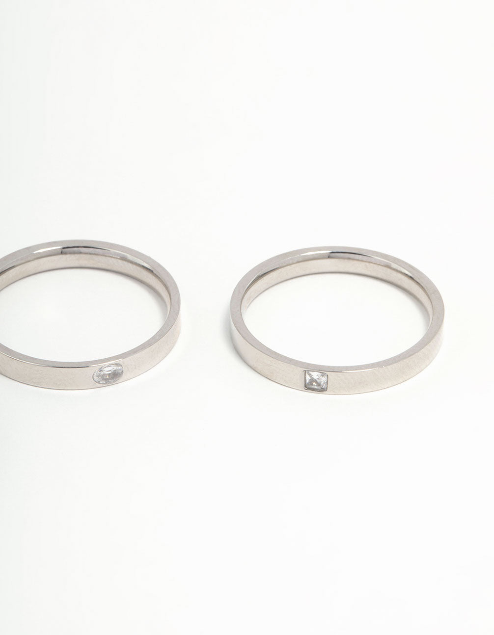 Stainless Steel Cubic Zirconia Rings 3-Pack