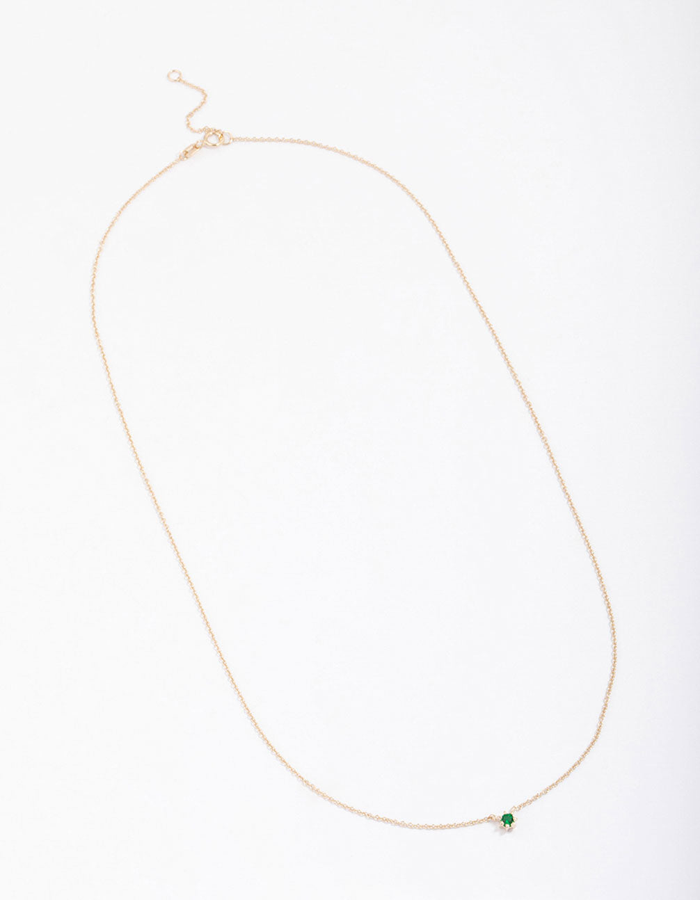 Gold Plated Sterling Mini Emerald Silver Cubic Zirconia Pendant Necklace