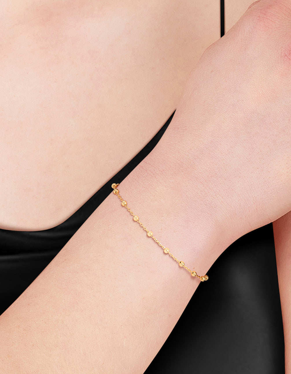 Invest in quality with gold-plated sterling silver. This lovely gold chain can be worn on your wrist or on your ankle. It features a classic sphere design.