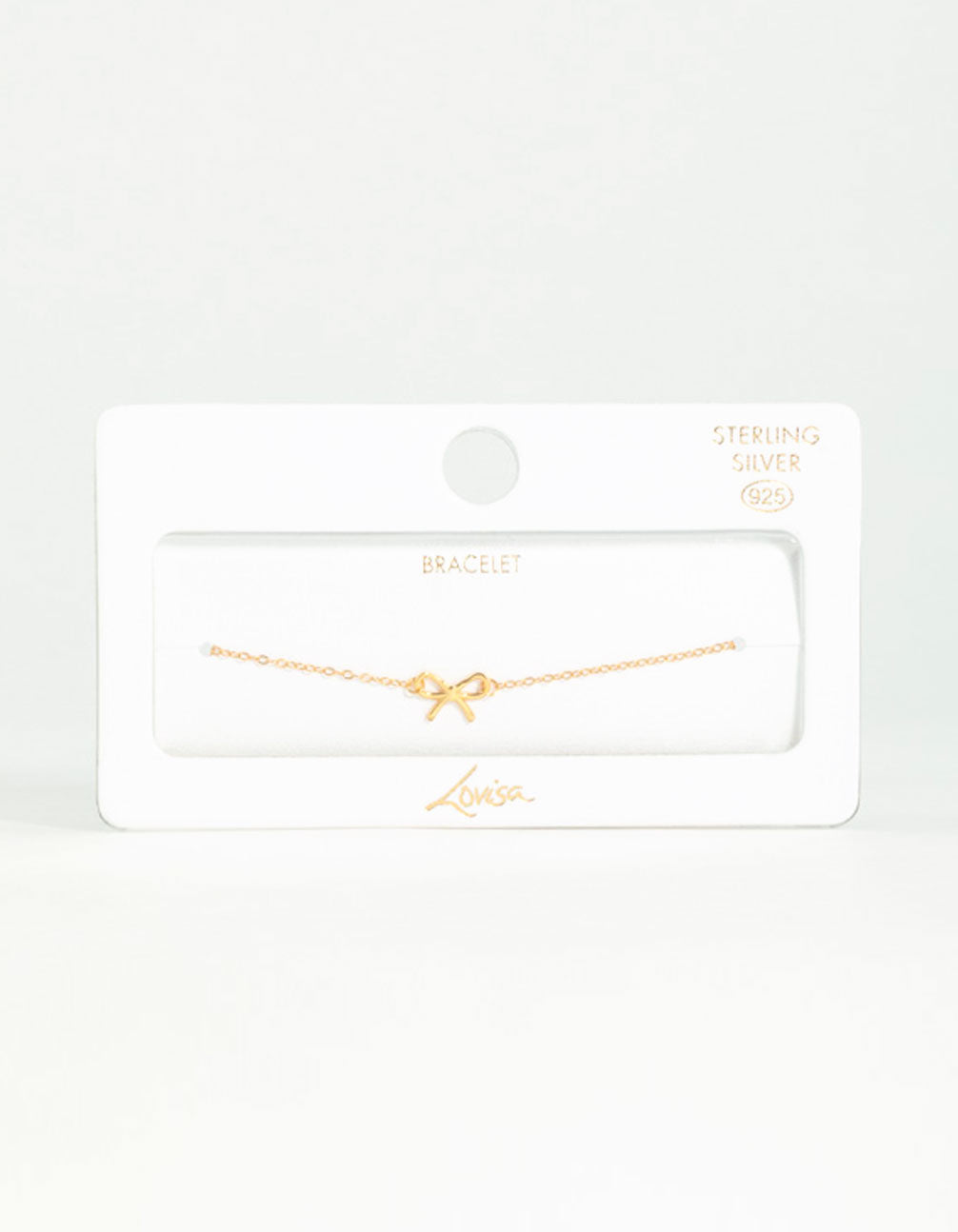 Embrace coquette charm with this captivating gold-plated sterling silver bow chain bracelet. Its sleek design and flirty bow detail bring glamour to any outfit. This is a chic must-have that shines day and night.
