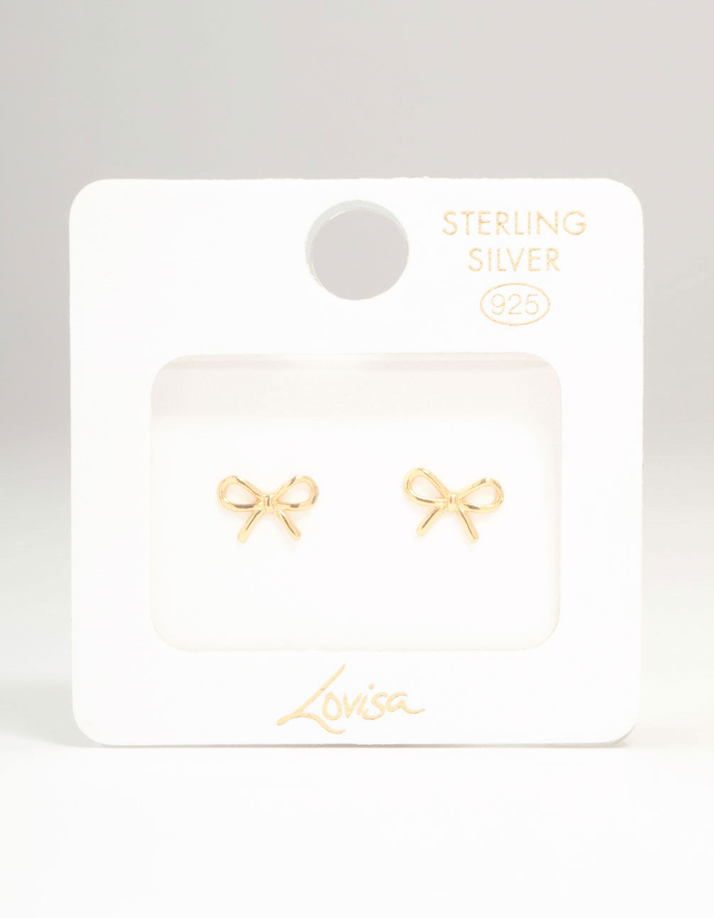 Add a playful touch to your style with these stunning gold-plated sterling silver studs! Featuring a durable sterling silver base and a fun, flirty bow design, they're perfect for any occasion.