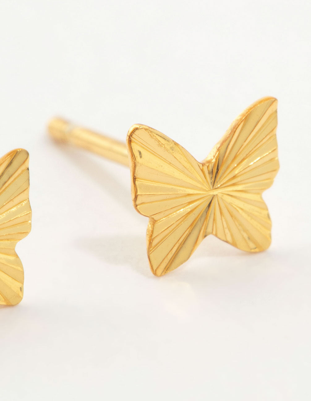 Add a touch of magic to your style with these gold-plated sterling silver studs! Featuring ribbed butterfly designs, they're perfect for a whimsical look.