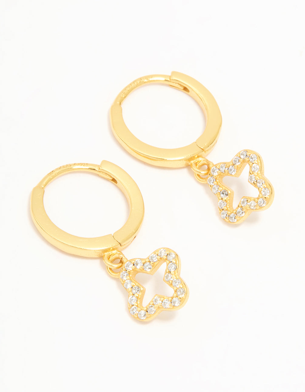 Gold Plated Sterling Silver Cubic Zirconia Flower Huggie Earrings