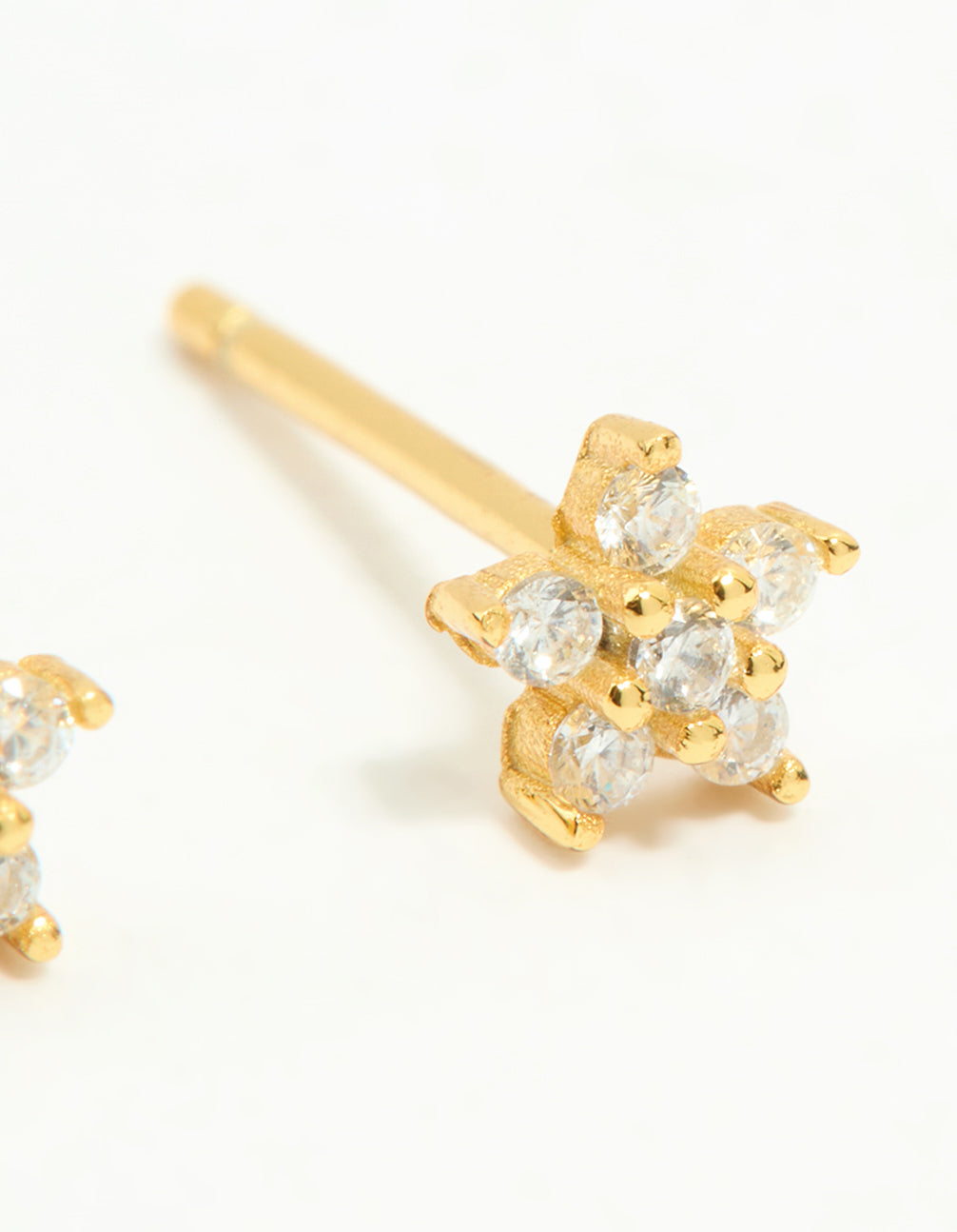 Gold Plated Sterling Silver Cubic Zirconia Flower Stud Earrings