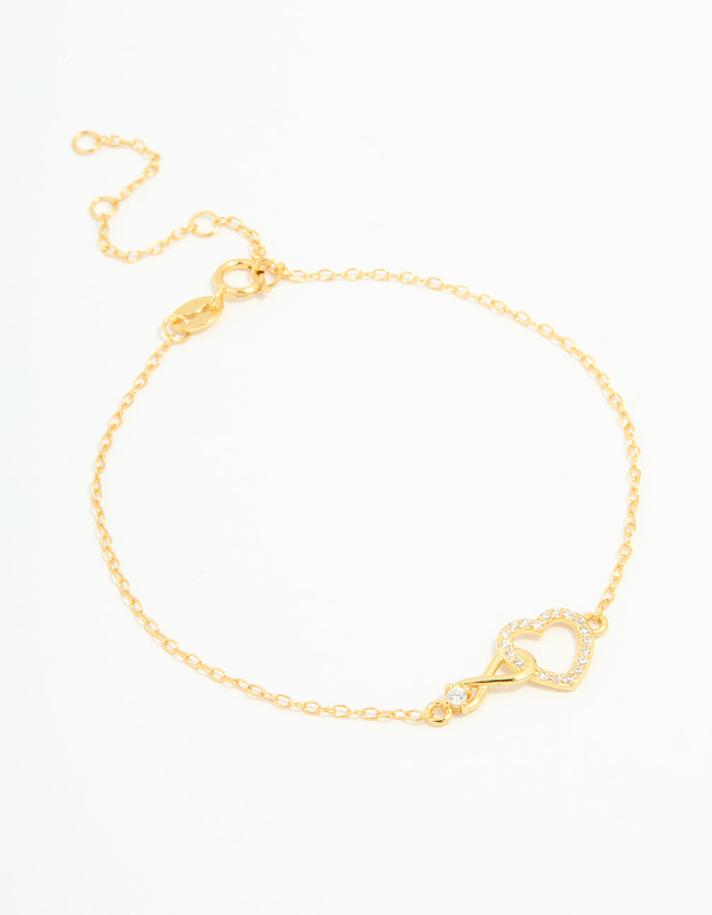 Gold Plated Sterling Silver Cubic Zirconia Infinity & Heart Bracelet