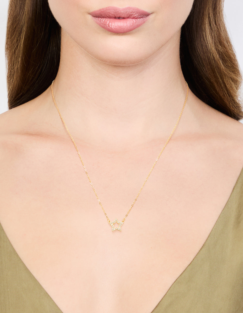 Add a touch of sparkle to your look with this Gold Plated Sterling Silver Cubic Zirconia Pavé Star Necklace. This dazzling pendant necklace features a chic star-shaped design adorned with pavé-set cubic zirconia crystals, all beautifully crafted in sterling silver with a luxe gold plating. Perfect for everyday glamour or special occasions, this piece pairs effortlessly with casual tees or elegant dresses. Whether you're dressing up for a night out or adding a little magic to your daytime outfit, this gold-plated necklace is your go-to accessory for timeless style and youthful charm.