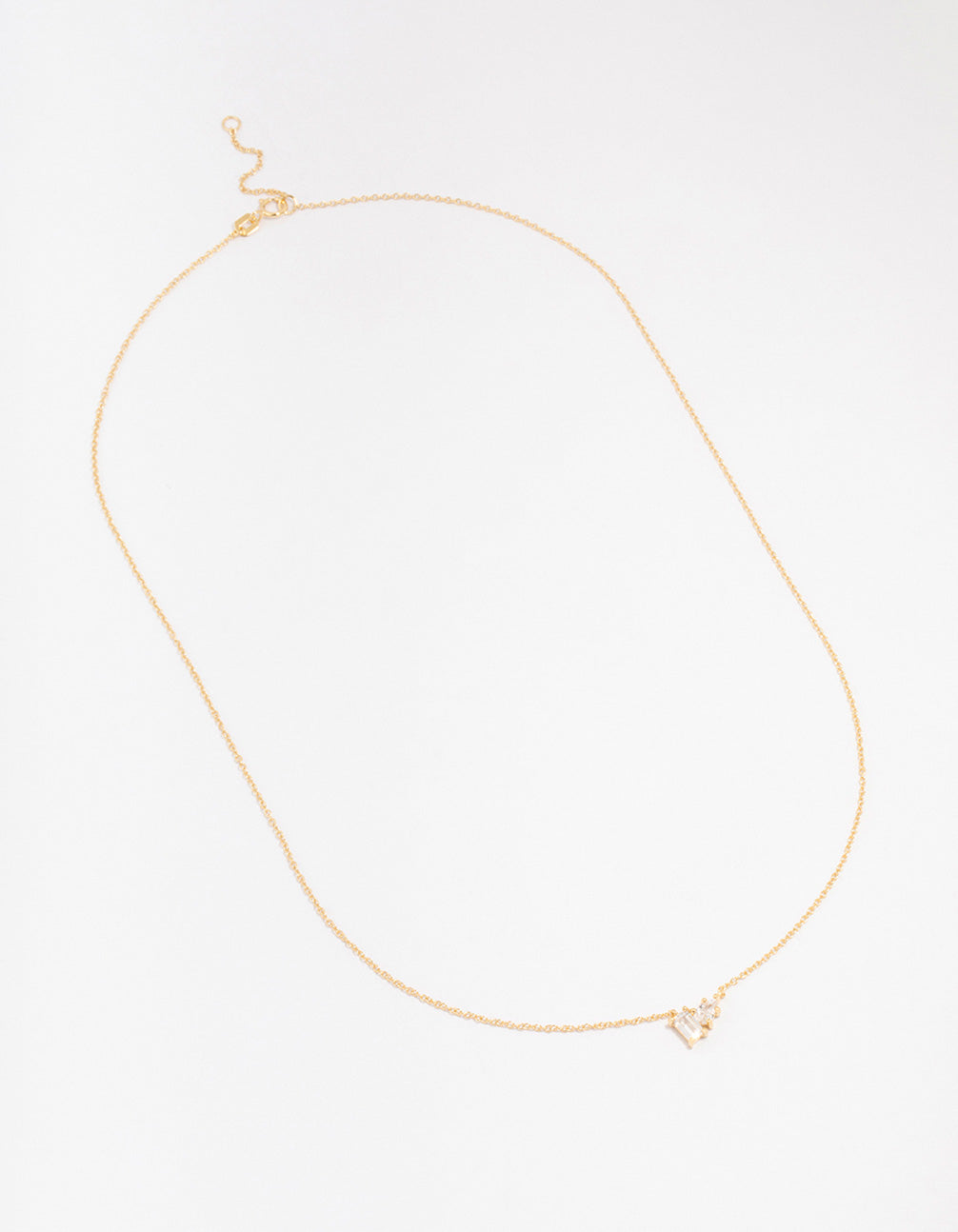 Add sparkle and shine with genuine sterling silver plated in real gold. This stylish necklace features two pear-shaped, sparkling cubic zirconia stones, making it an eye-catching piece that complements most outfits.