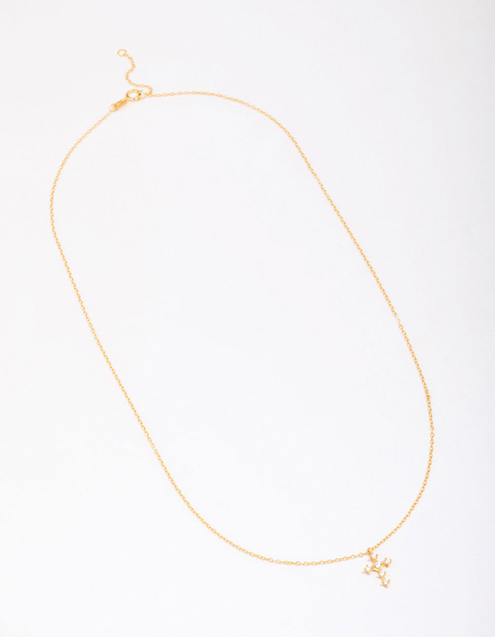 Gold Plated Sterling Silver Cubic Zirconia Round Cross Chain Necklace