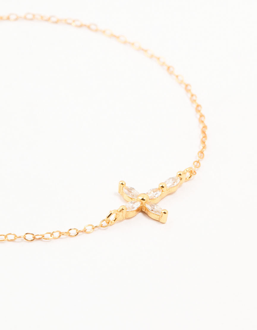Gold Plated Sterling Silver Marquise Cross Bracelet