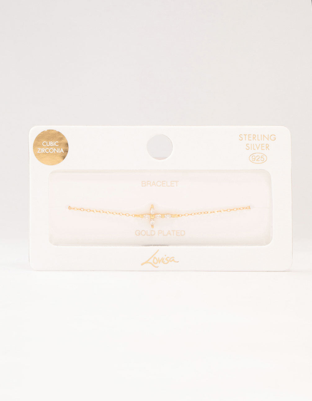 Step up your wrist game with this stunning bracelet! It features a gold-plated sterling silver base and a sparkling cubic zirconia cross charm, adding just the right amount of dazzle to any outfit.