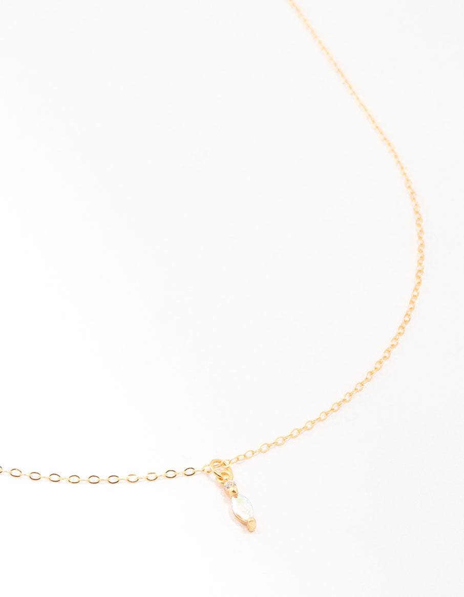 Upgrade your necklace game with a classic twist! This stunning piece features a sparkly cubic zirconia marquise cut pendant for simple glam, paired with a delicate gold-plated sterling silver chain.