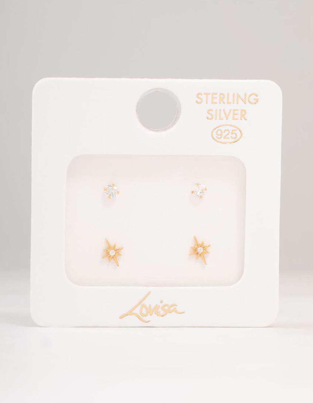 Gold Plated Sterling Silver Mini Starburst Earrings 2-Pack