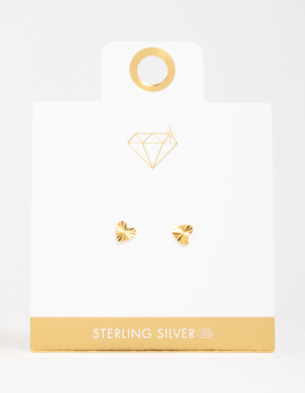 Gold Plated Sterling Silver Ribbed Heart Stud Earrings
