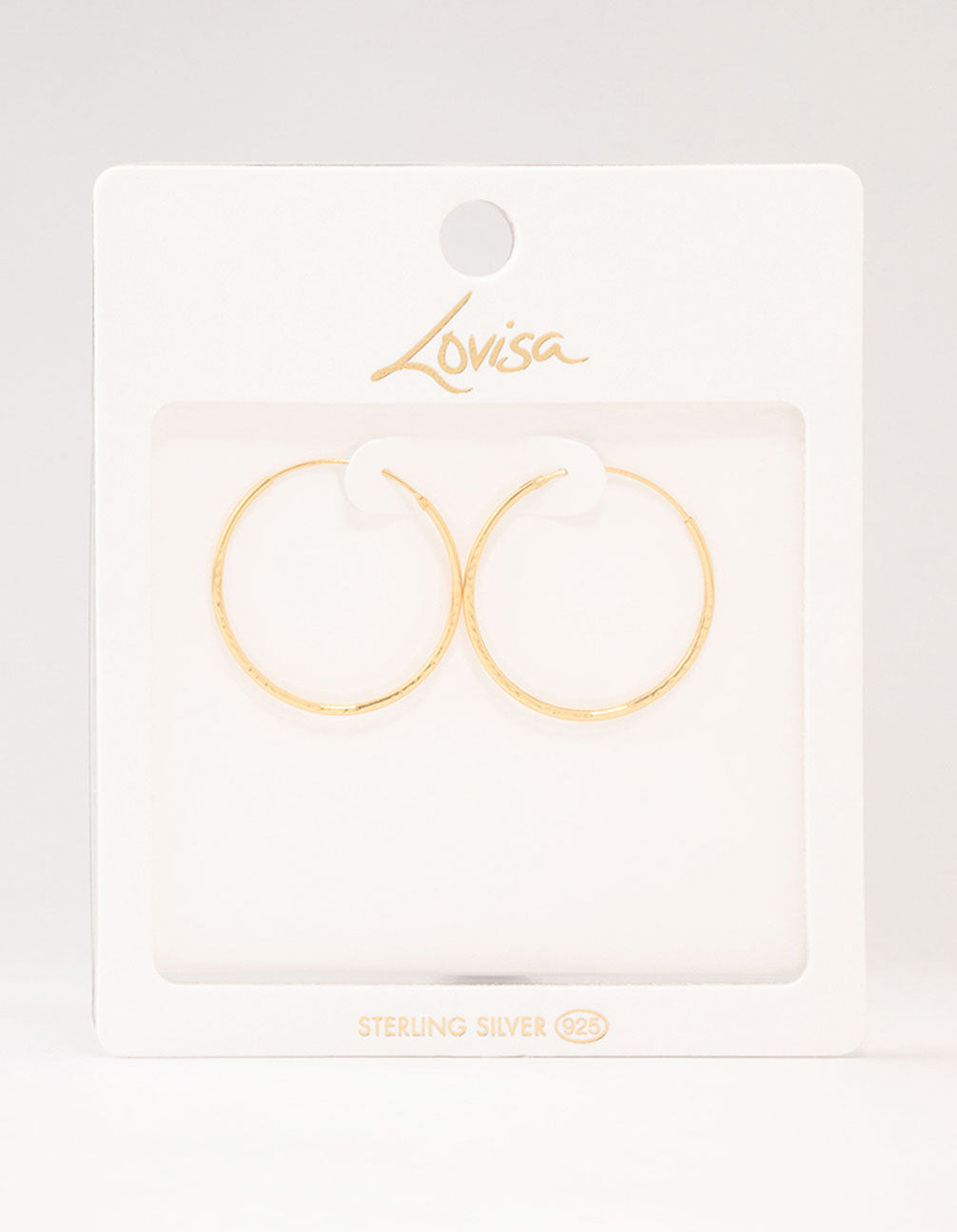 Embrace your inner IT girl with these classic effortlessly cool hoop earrings. These hoop earrings are crafted using gold plated sterling silver for a luxe but durable finish and include a subtle texture and a thin design for a lightweight but cool finish.