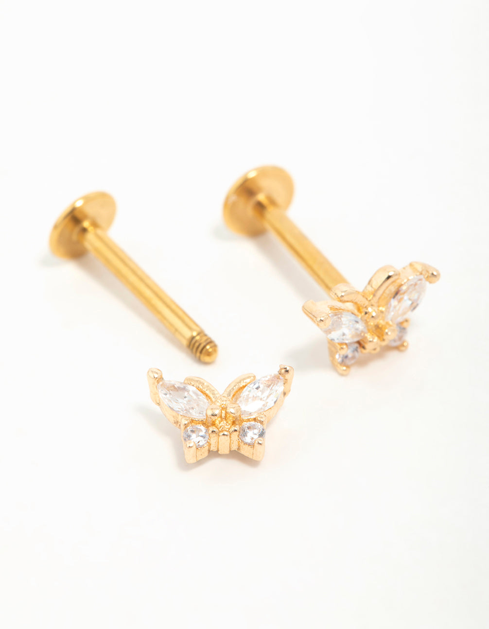 Gold Plated Surgical Steel Cubic Zirconia Butterfly Flat Back Earrings