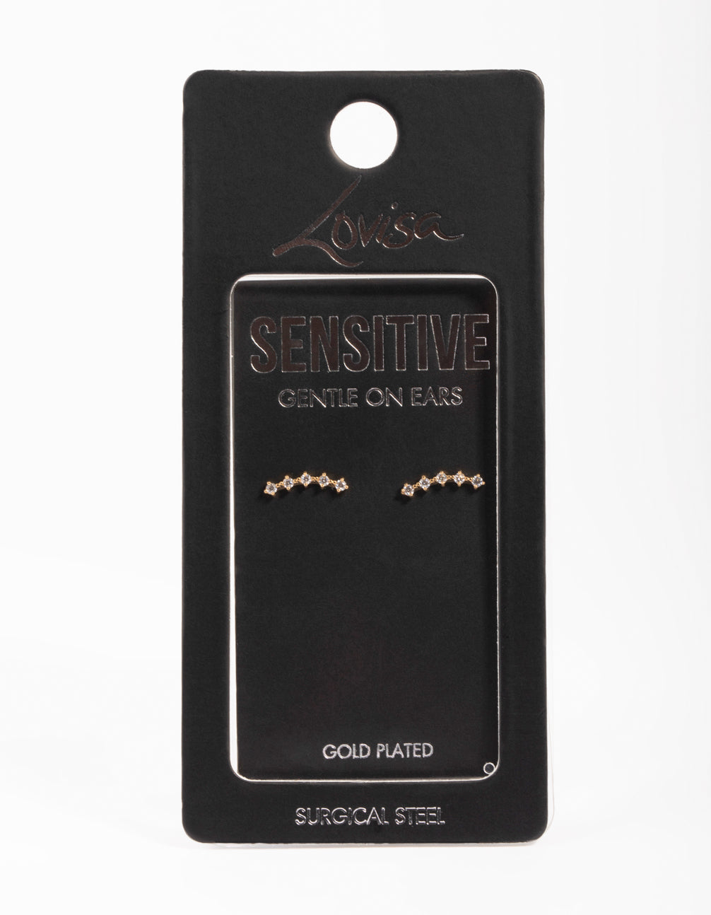 Dazzle with these gold-plated crawler stud earrings. Crafted from surgical steel and adorned with shimmering cubic zirconia, this sensitive-ear-friendly design delivers unparalleled sparkle and comfort.