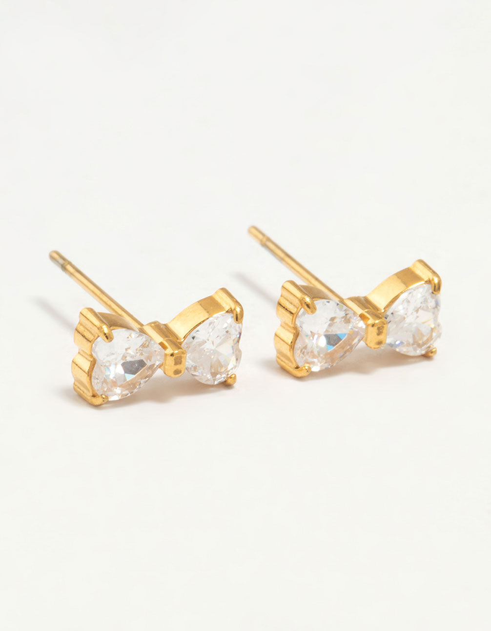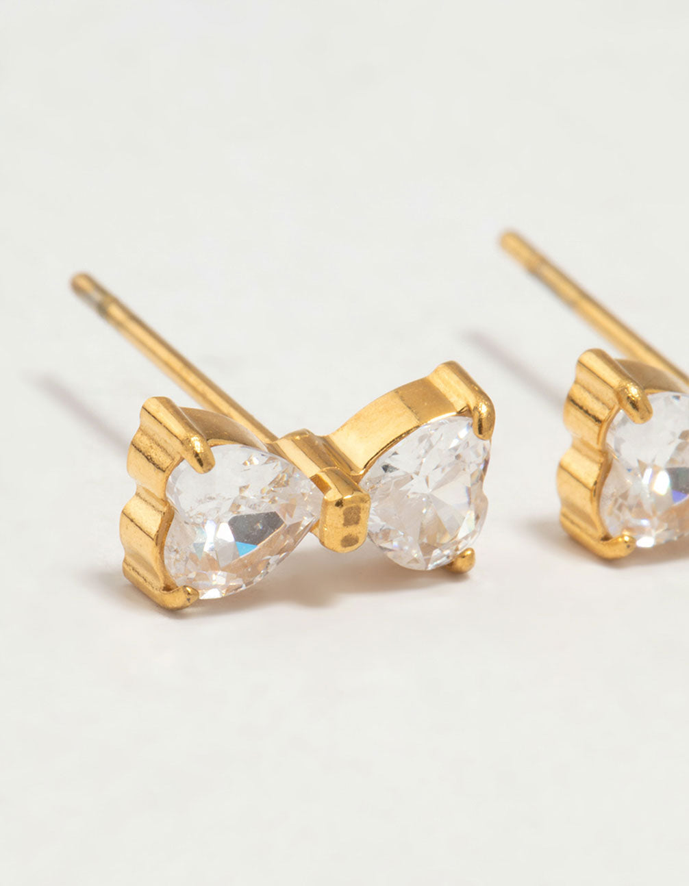 Gold Plated Surgical Steel Cubic Zirconia Heart Bow Stud Earrings