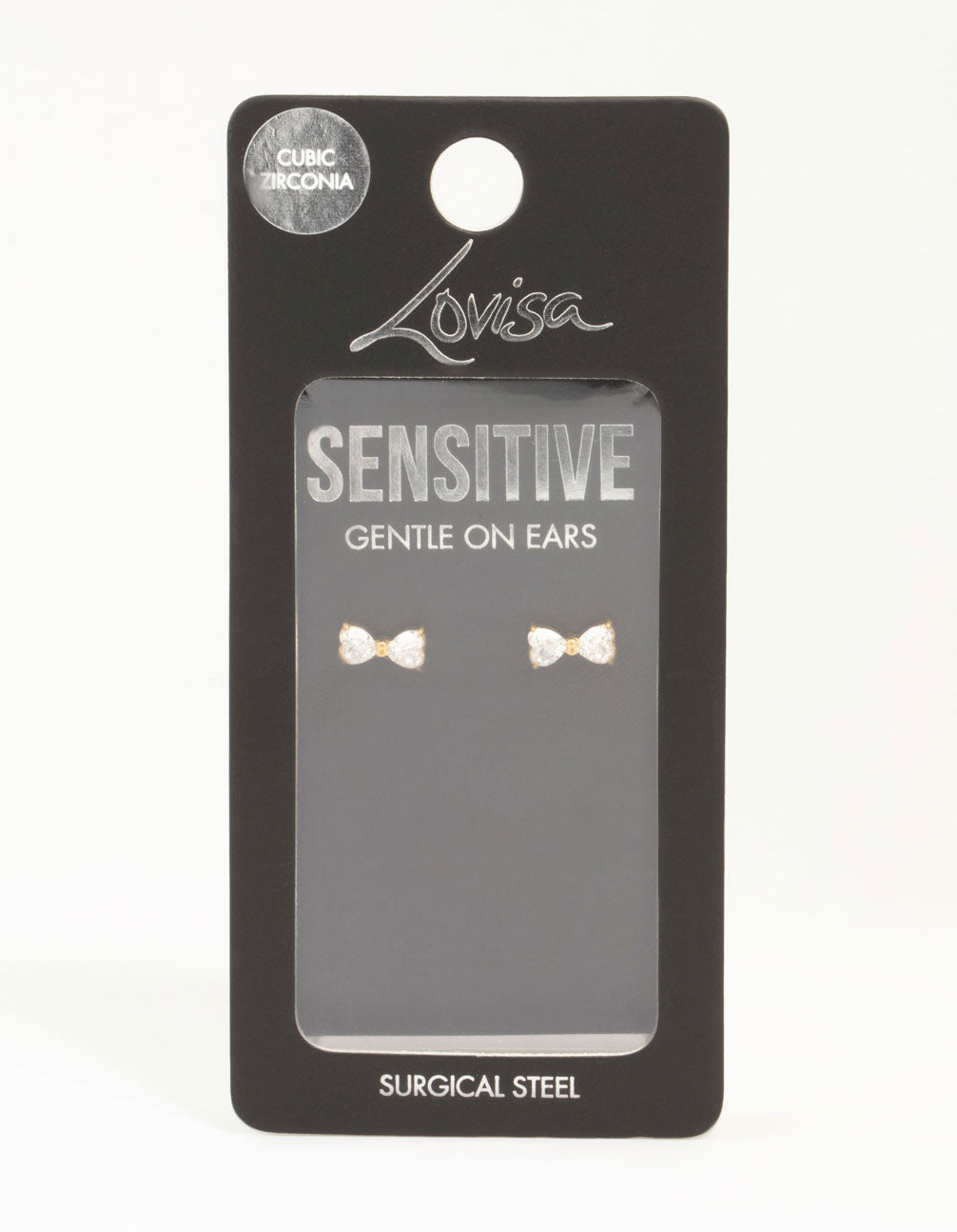 Add some playfulness and glam to your look with these stud earrings! Crafted from gold-plated surgical steel for sensitive skin, they feature a pretty cubic zirconia crystal bow design.