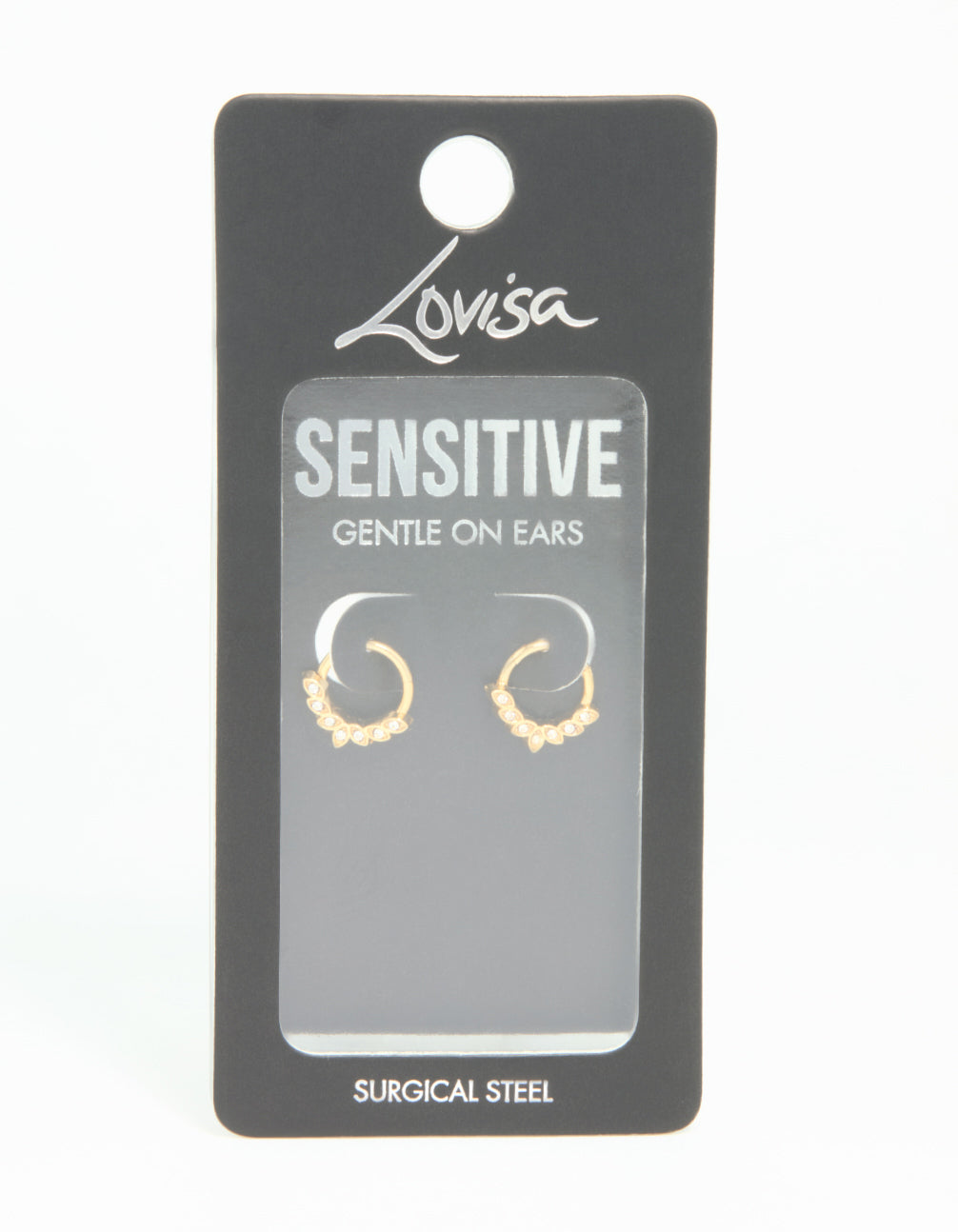 Gold Plated Surgical Steel Cubic Zirconia Leaf Clicker Sleeper Hoop Earrings