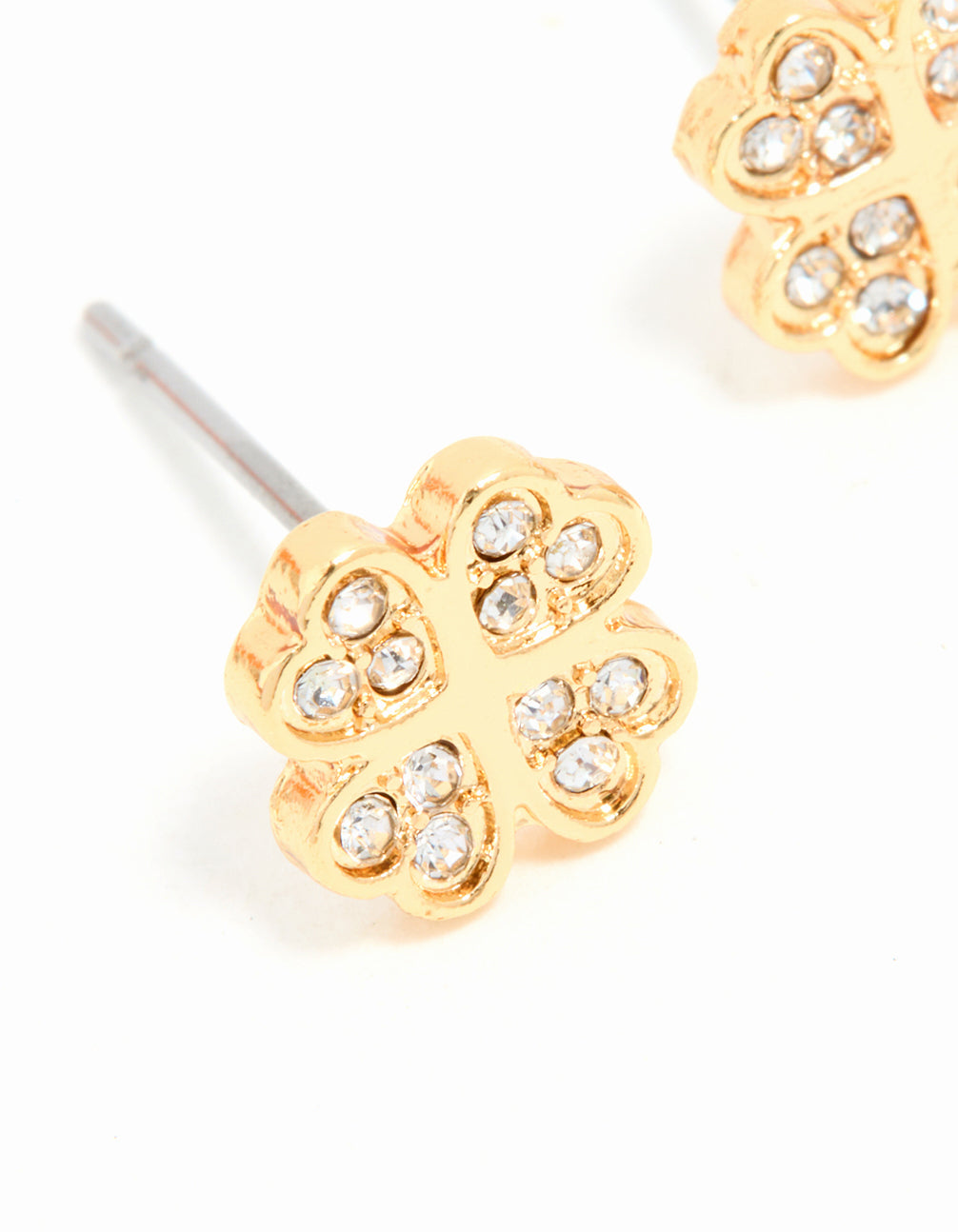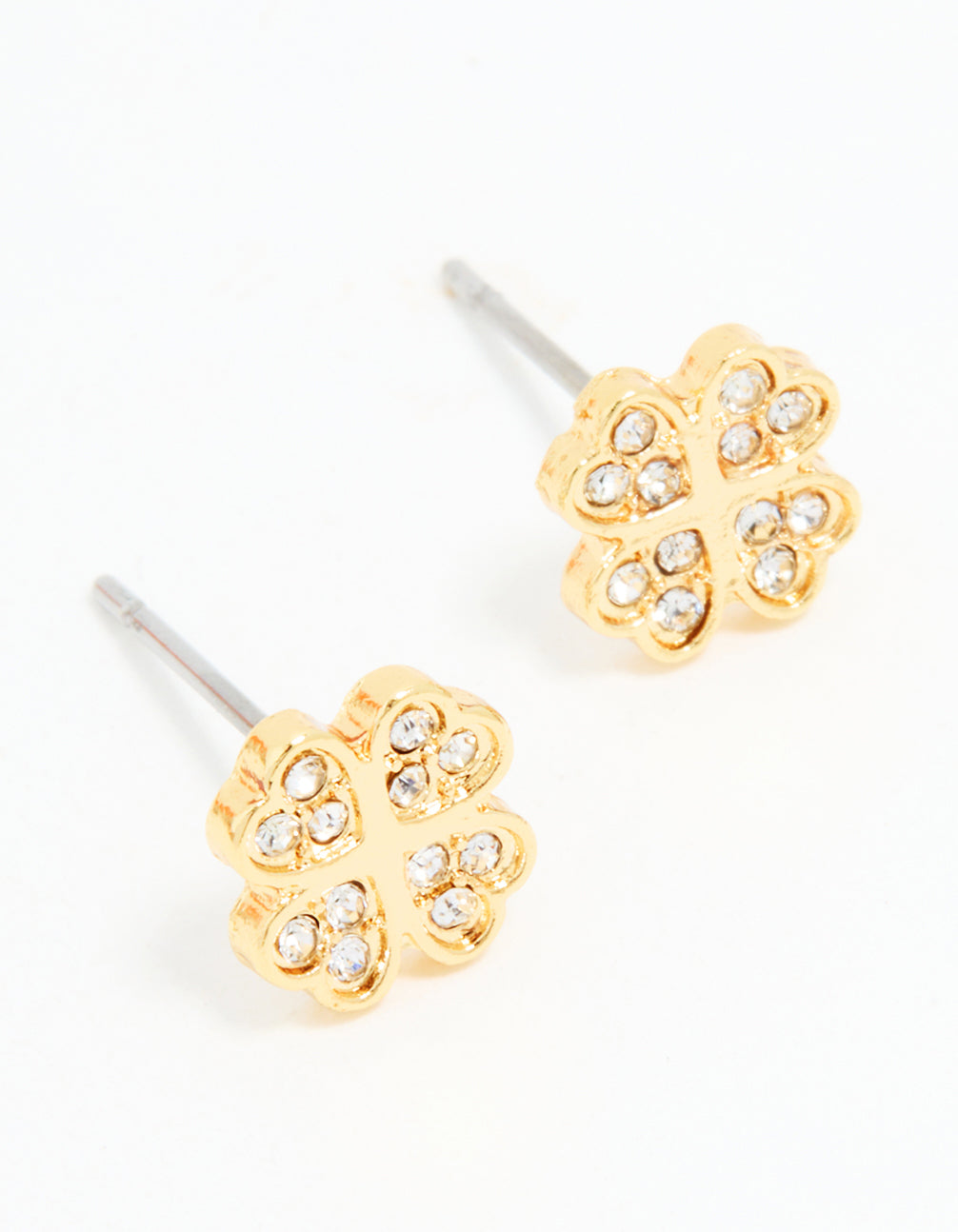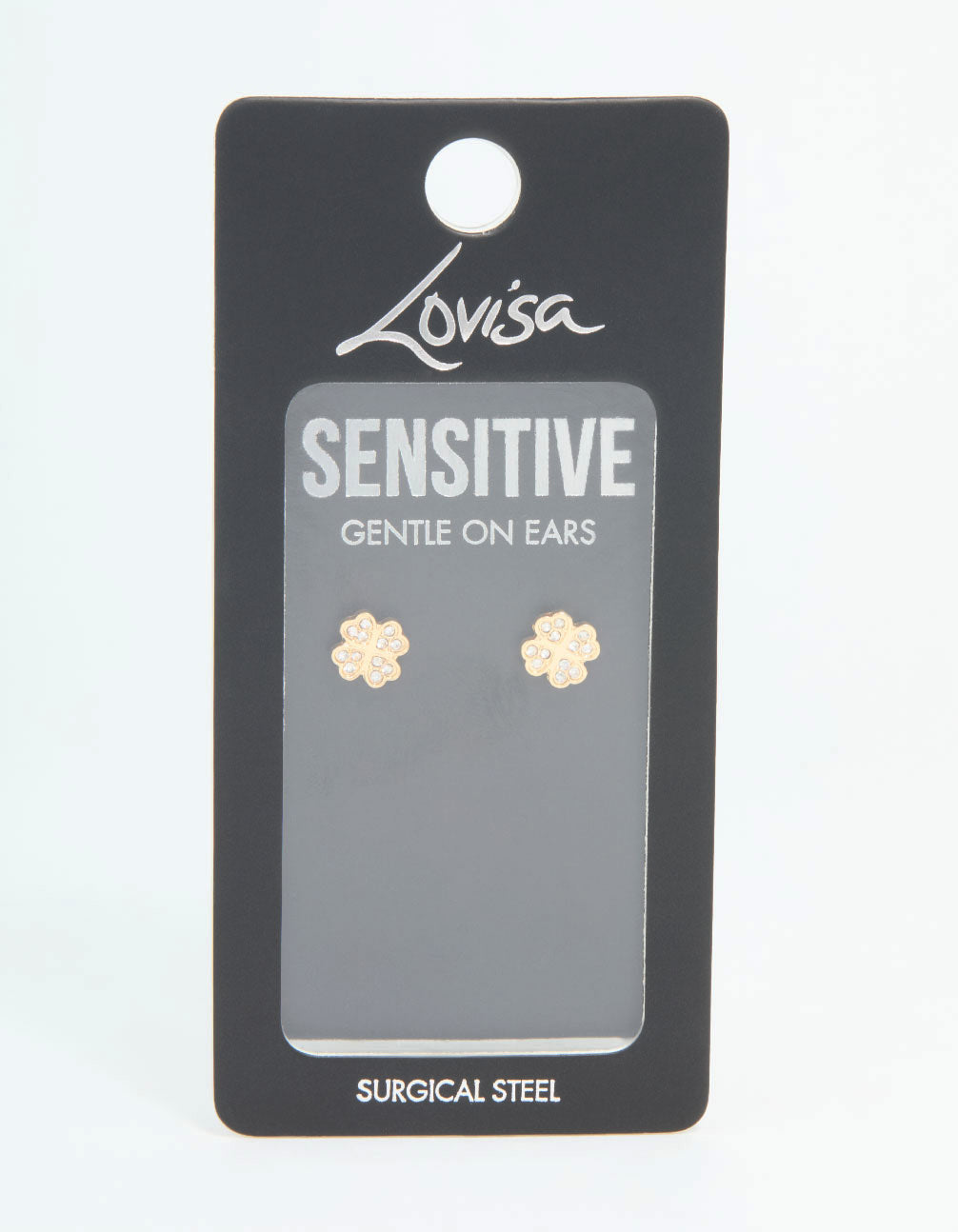 Gold Plated Surgical Steel Diamante Flower Stud Earrings