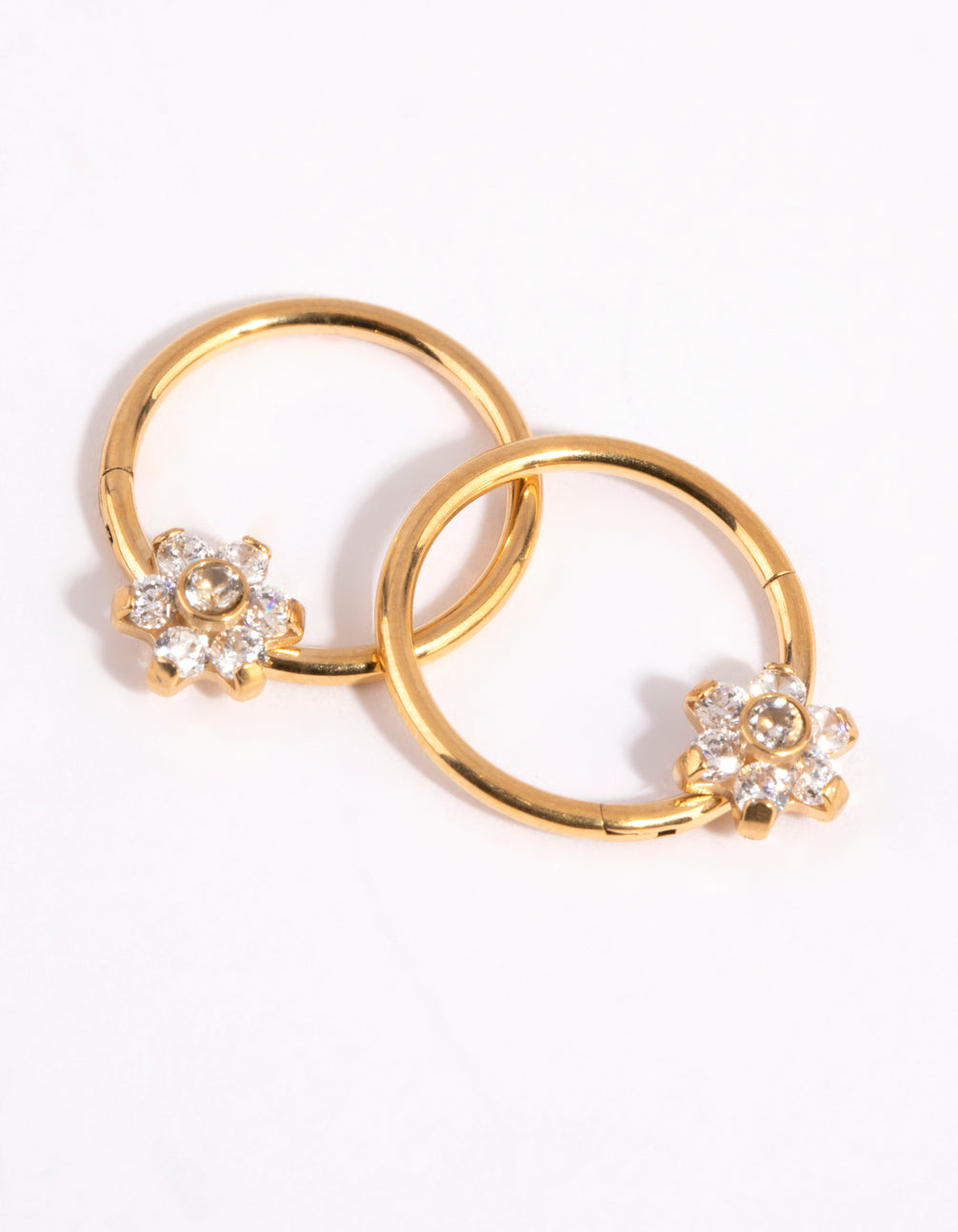 Gold Plated Surgical Steel Small Flower Hoop Earrings
