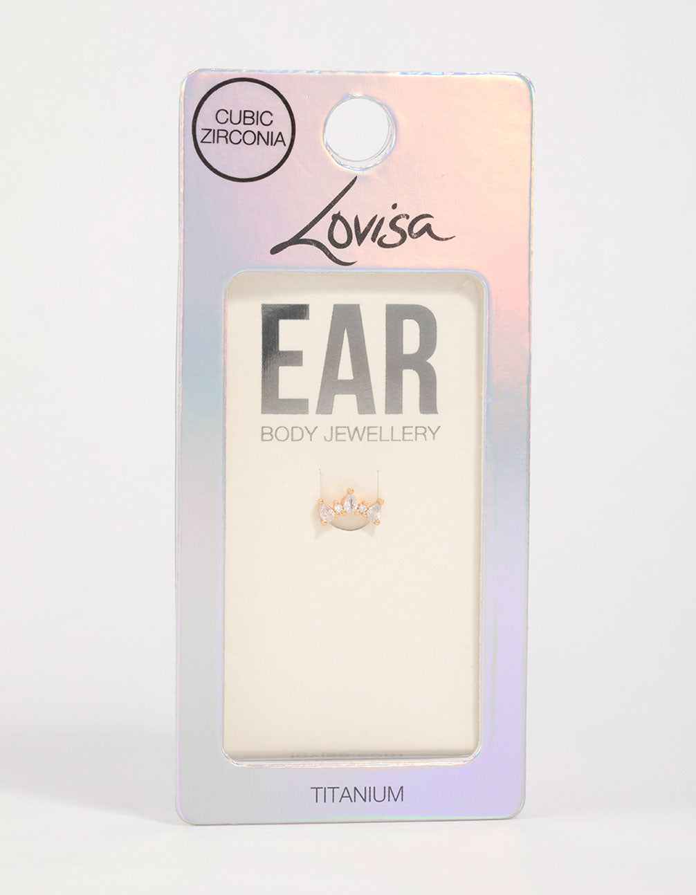 Gold Plated Titanium Cubic Zirconia Pear Crawler Flat Back Stud