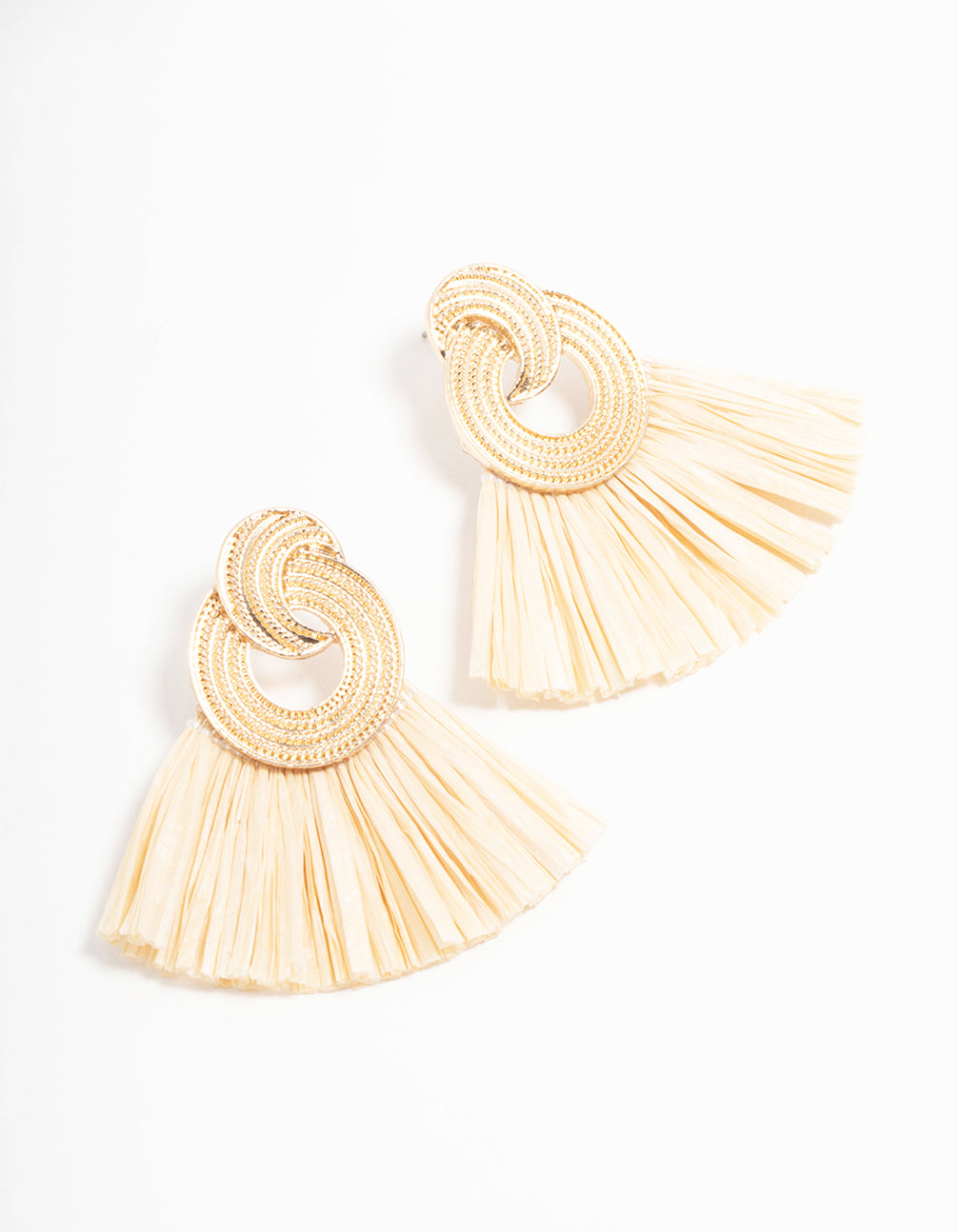 Add a bohemian vibe to your style with these drop earrings! Featuring a chic raffia fan design, they're perfect for a laidback yet stylish look that catches the eye.