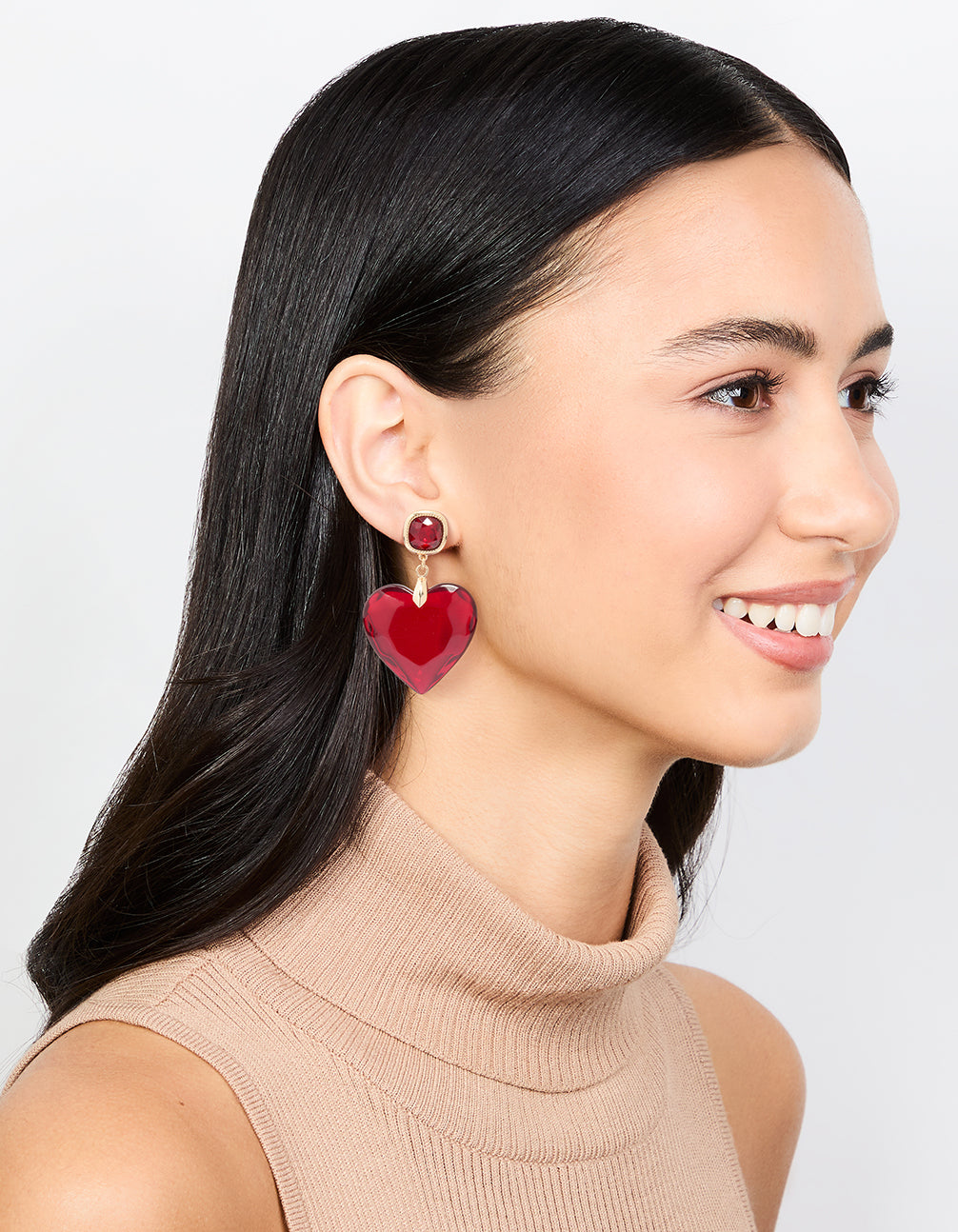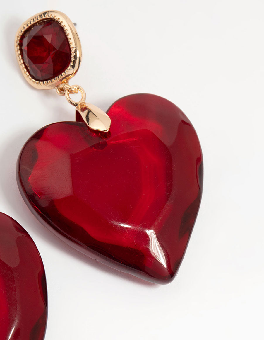 Gold Red Acrylic Heart Drop Earrings