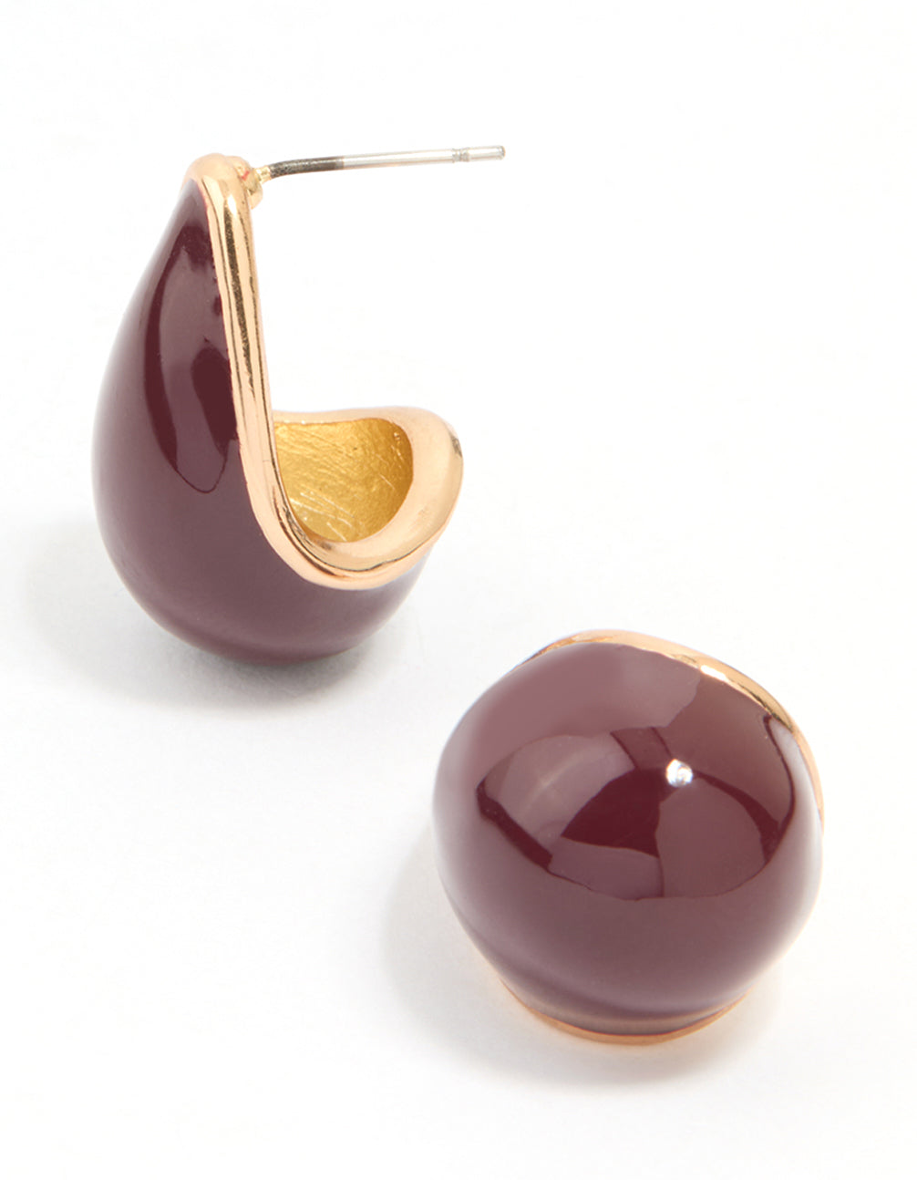 Gold Red Enamel Chunky Teardrop Hoop Earrings