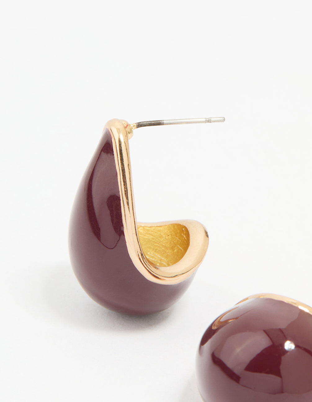 • Gold Red Enamel Chunky Teardrop Hoop Earrings - link has visual effect only