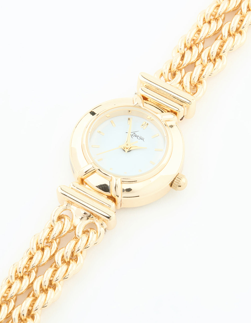 Elevate your wristwear game with this Gold Round Chain Watch Bracelet. Featuring a classic round design and a sleek gold chain bracelet style strap, this watch exudes timeless charm. It's a versatile jewellery piece that transitions effortlessly from day to night—ideal for work, brunch, or a glam evening out. Pair it with other gold accessories for a coordinated look, or let it shine on its own as your go-to statement piece. This watch makes dressing up (or down) easy while adding a polished finish to any outfit. A true must-have for anyone who loves chic, wearable jewellery!